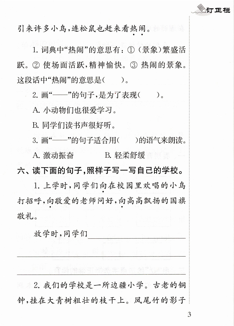 2025秋 补充习题 小学语文3上三年级上册 人教版 小学同步教辅教材配套用书 江苏凤凰教育出版社 官网正版