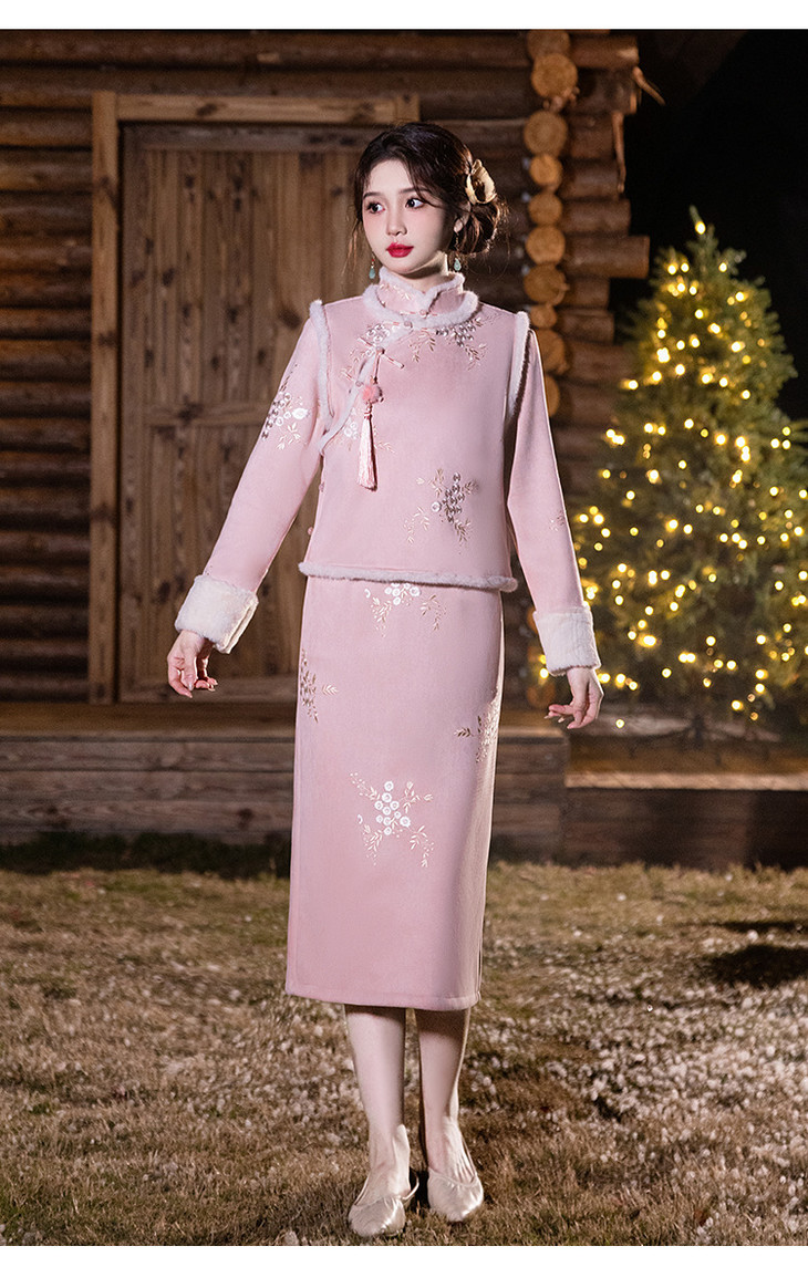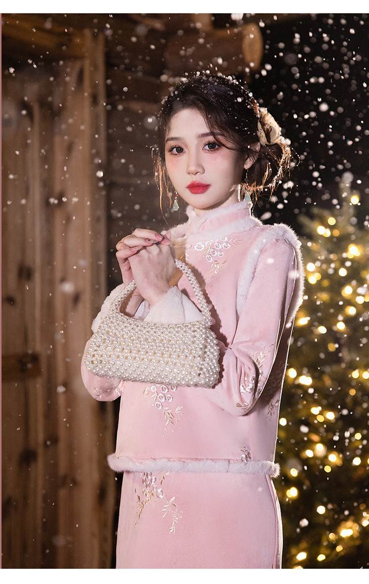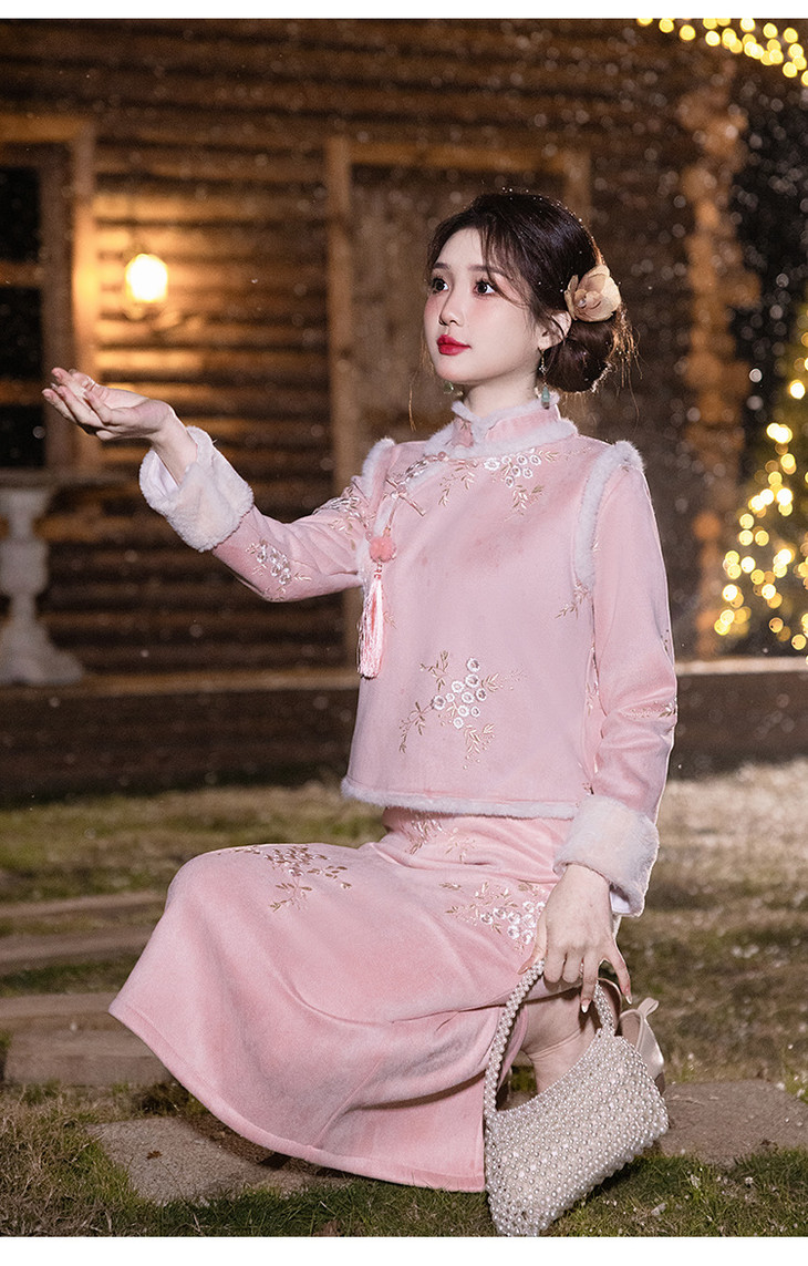 加绒改良女新中式日常可穿,马甲套装过年拜年服唐装旗袍LSB3278