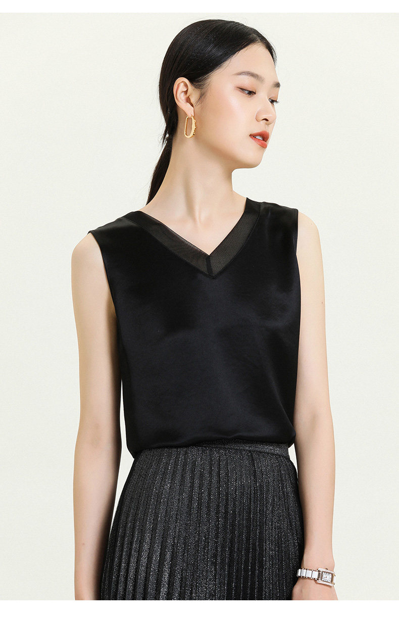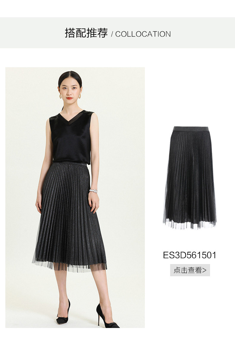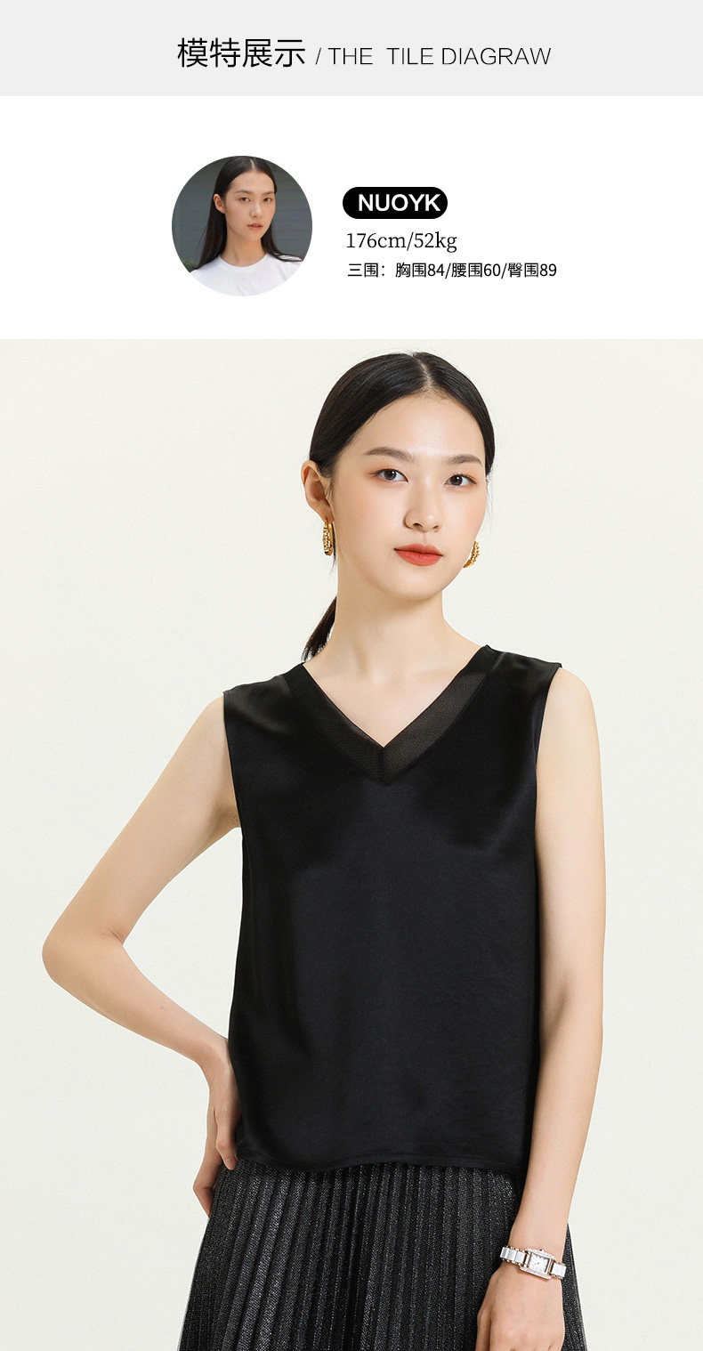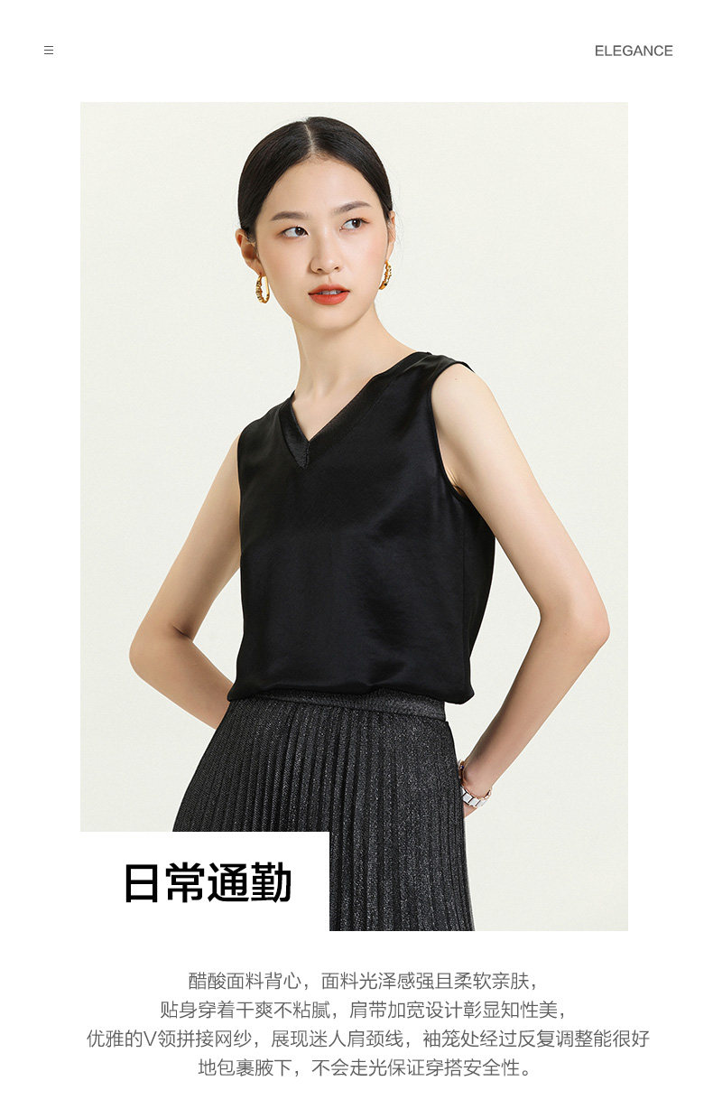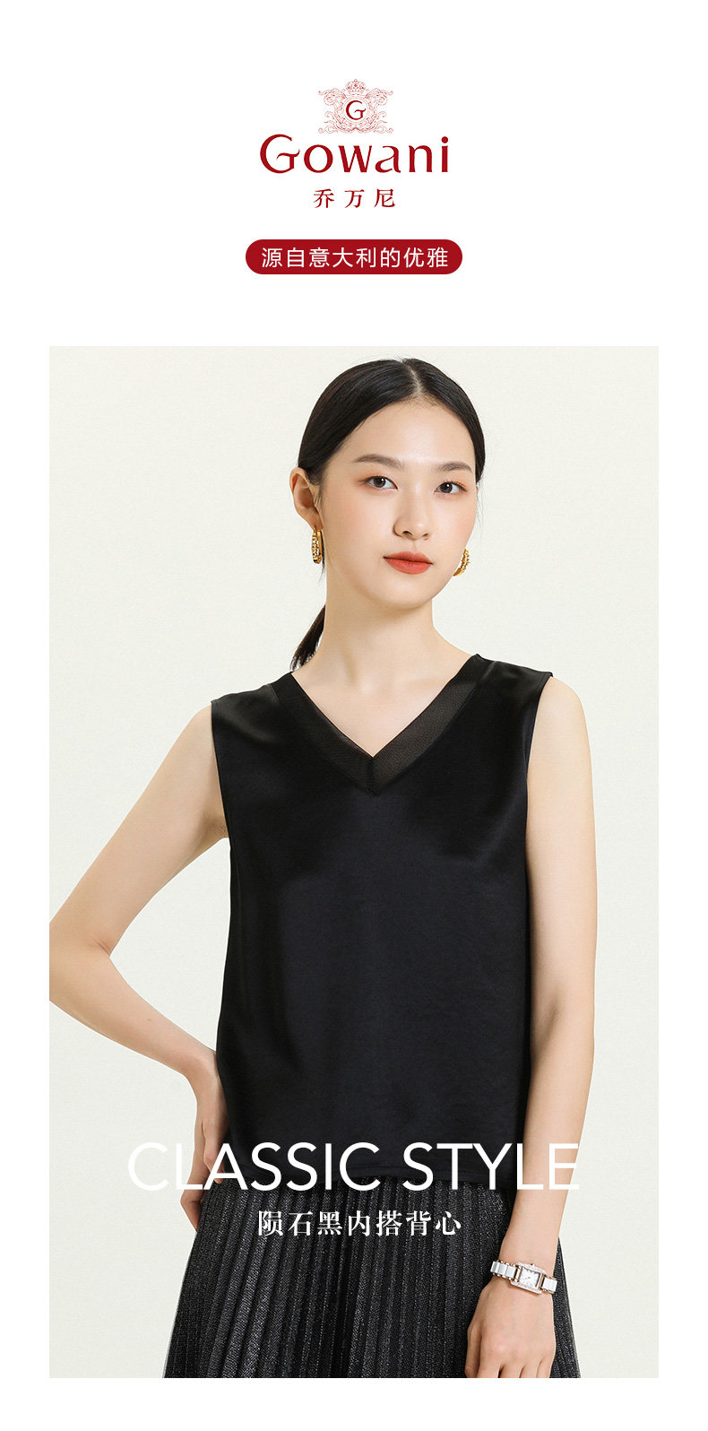 乔万尼秋季新款上衣柔软干爽V领拼接网纱顺滑舒适感黑色背心ES3H583