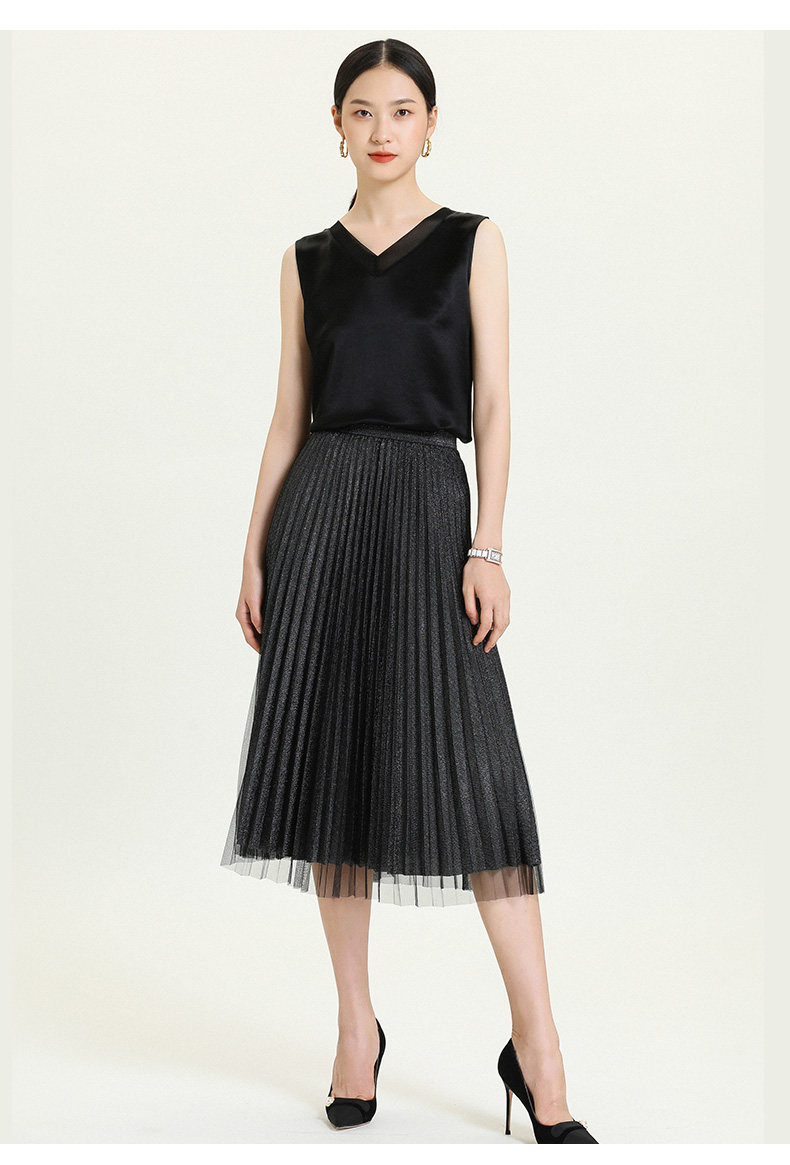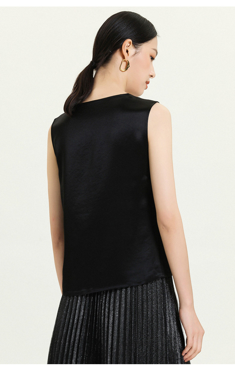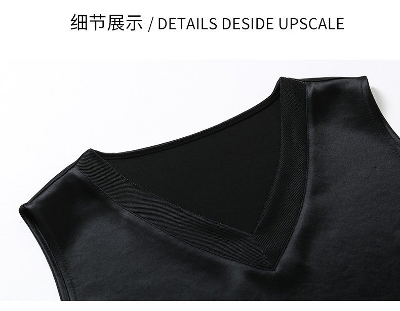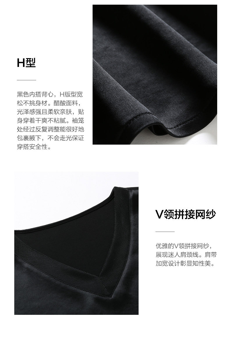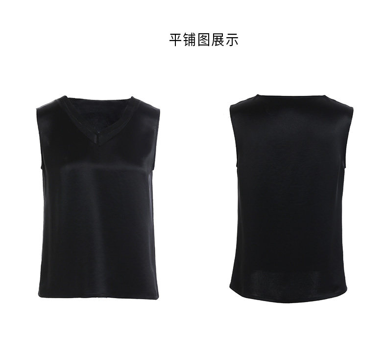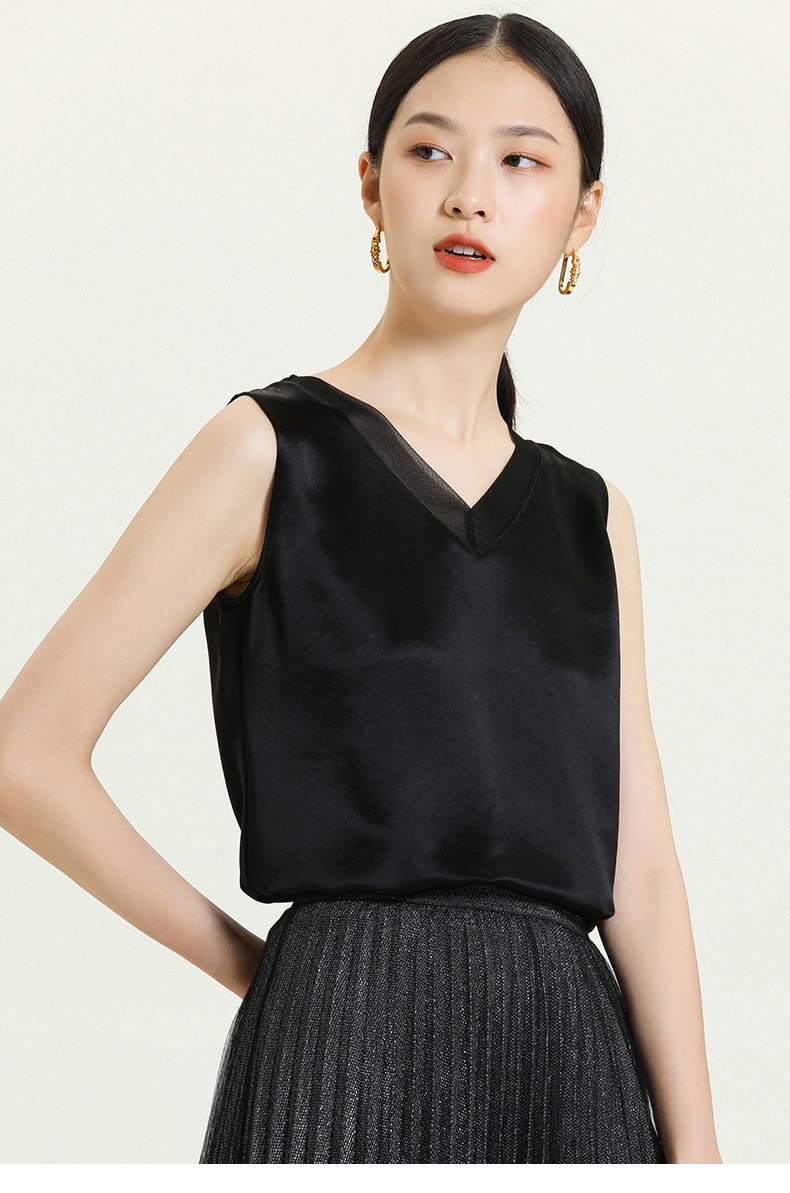 乔万尼秋季新款上衣柔软干爽V领拼接网纱顺滑舒适感黑色背心ES3H583