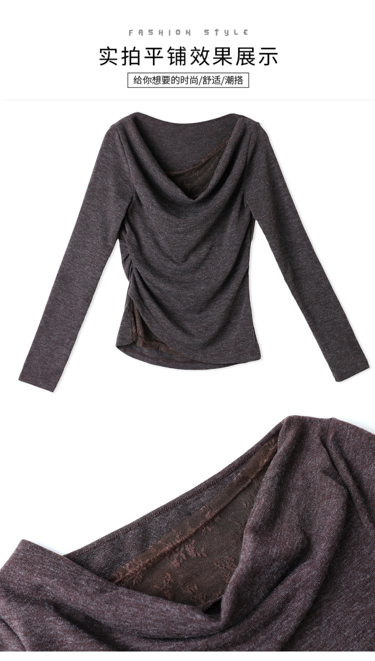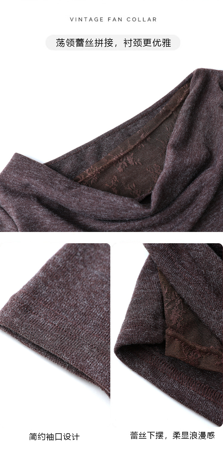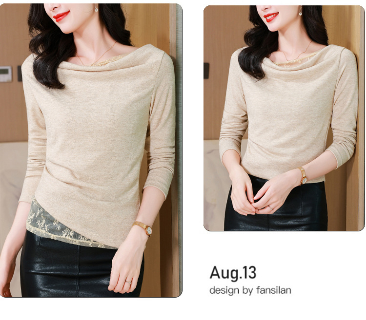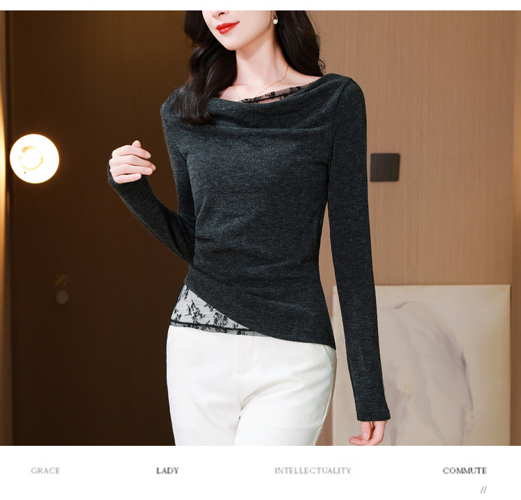 针织拼接蕾丝荡领收腰显瘦,打底衫长袖修身显瘦T恤KQL-E46N2042