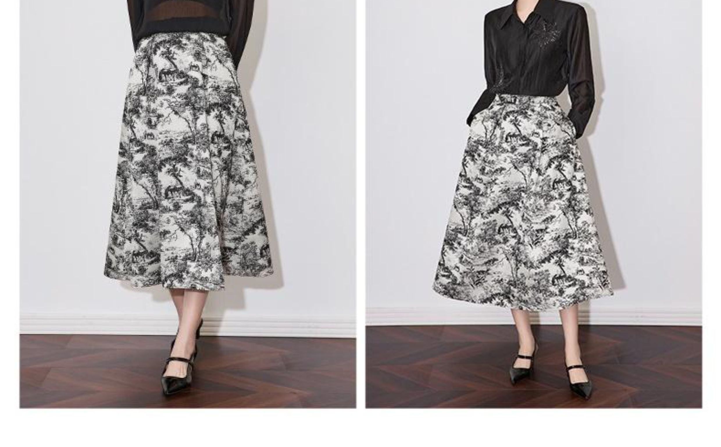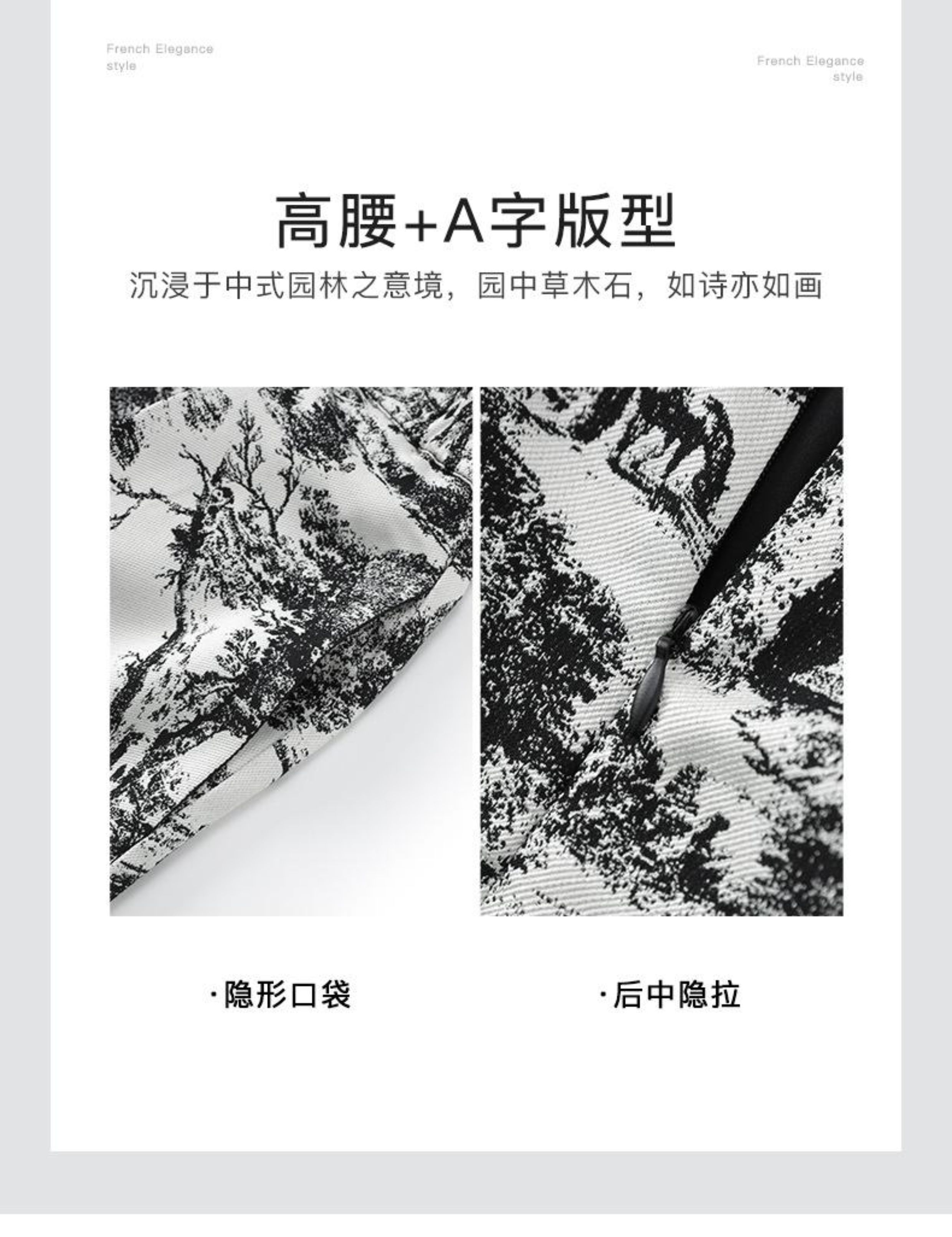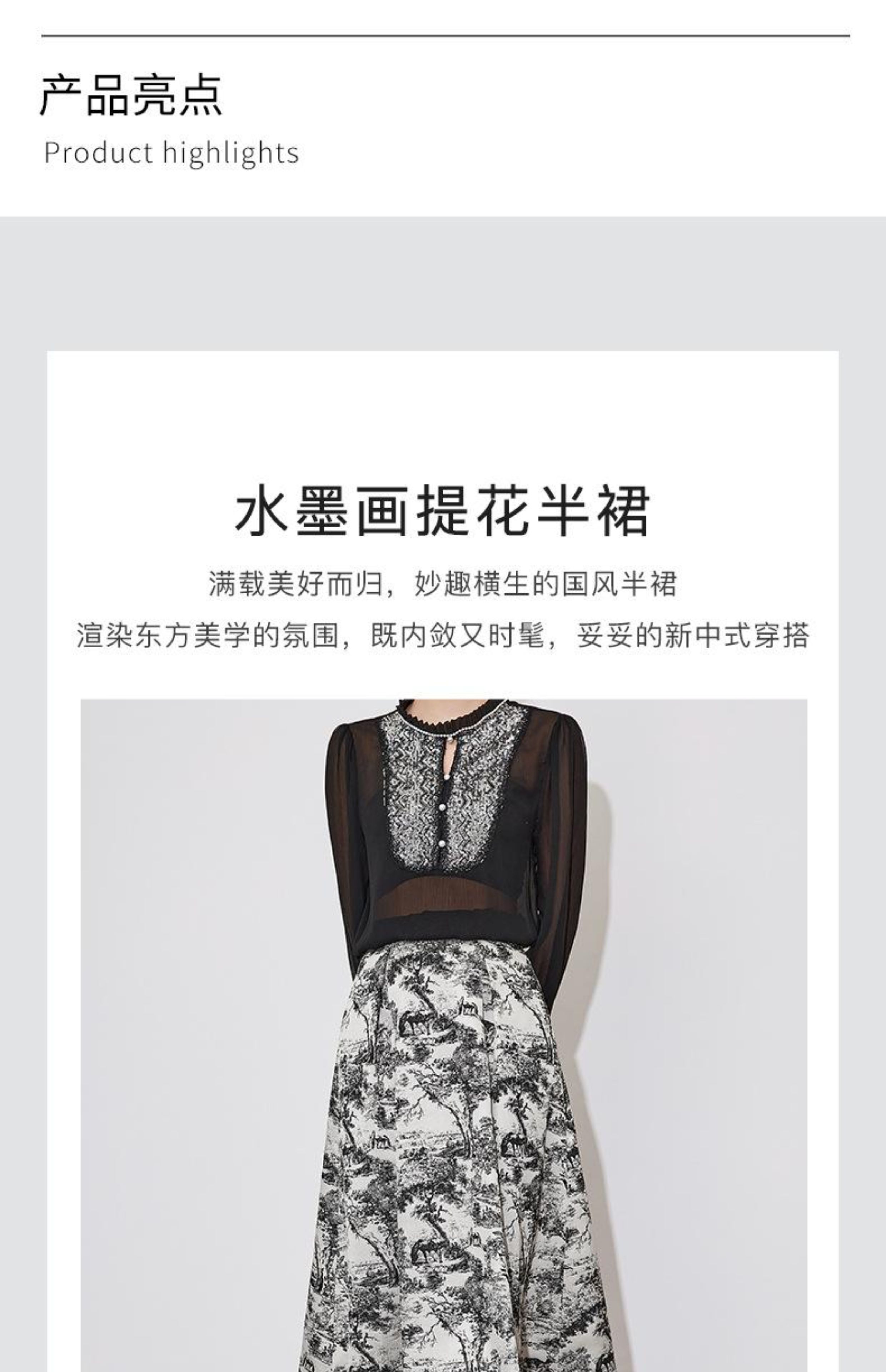 【高货wl】全新升级【铂金会员257/天猫339/差价82】(03909) 洛诗琳2025春季新中式水墨画浮雕提花优雅通勤遮肉半身裙