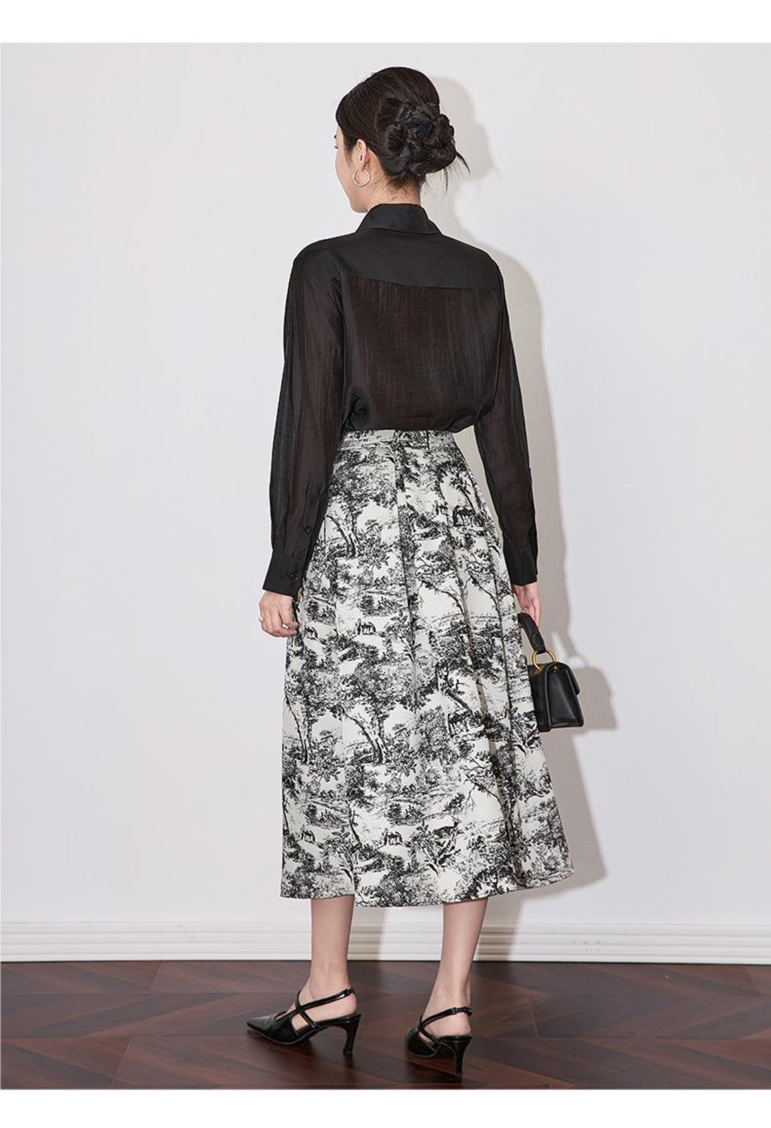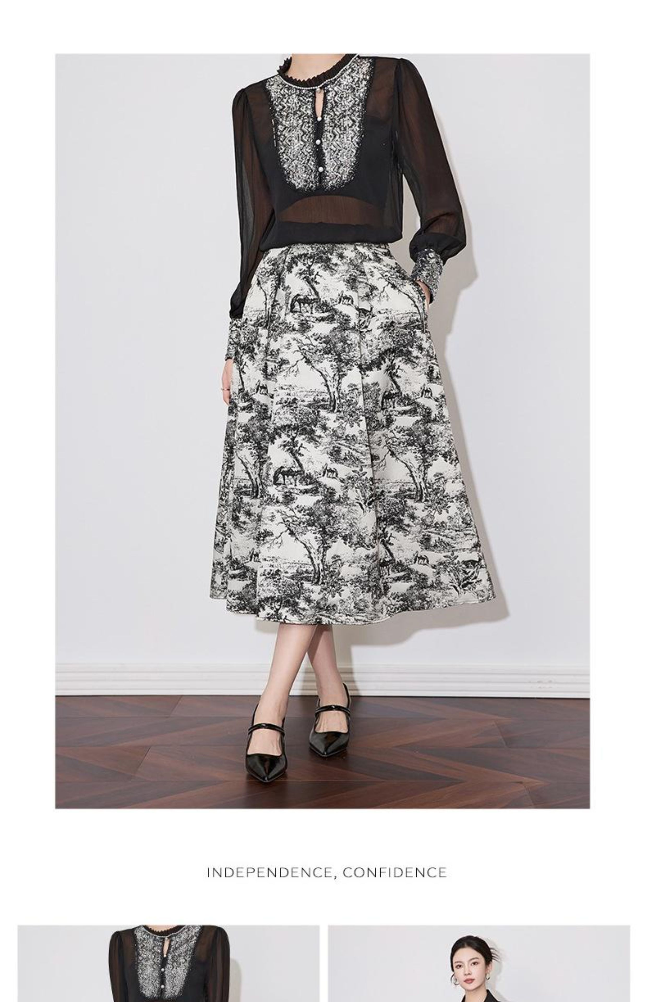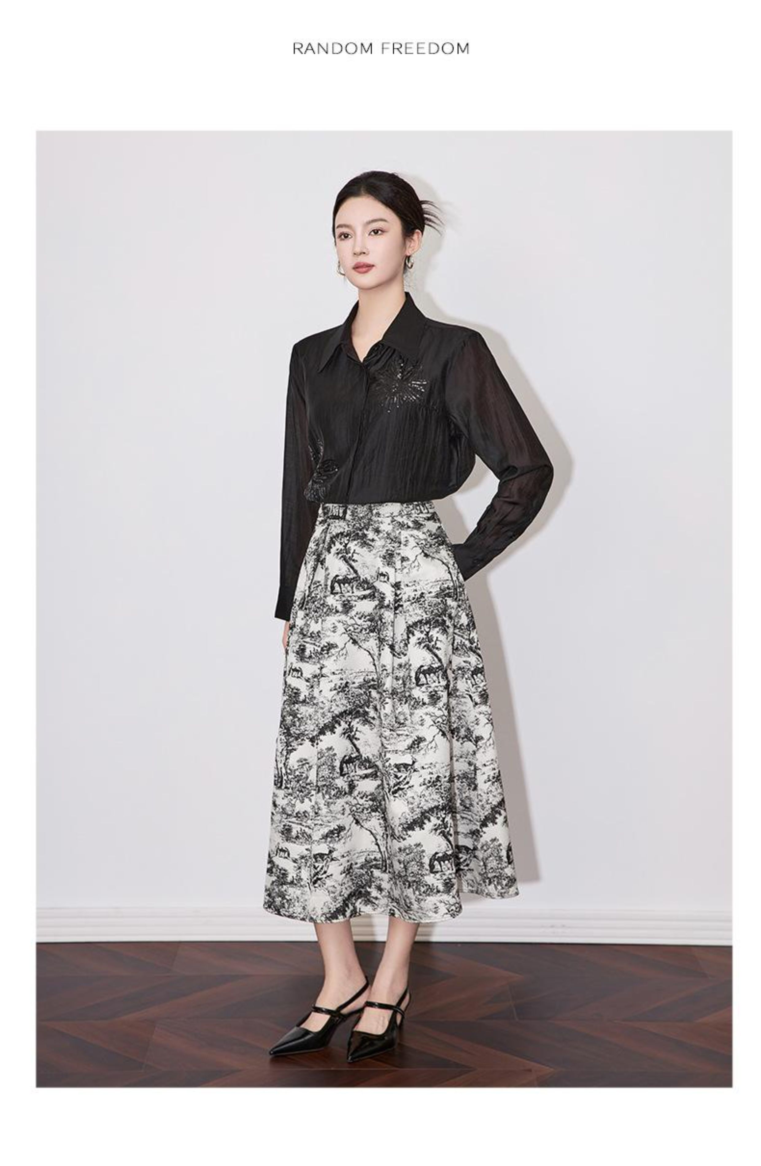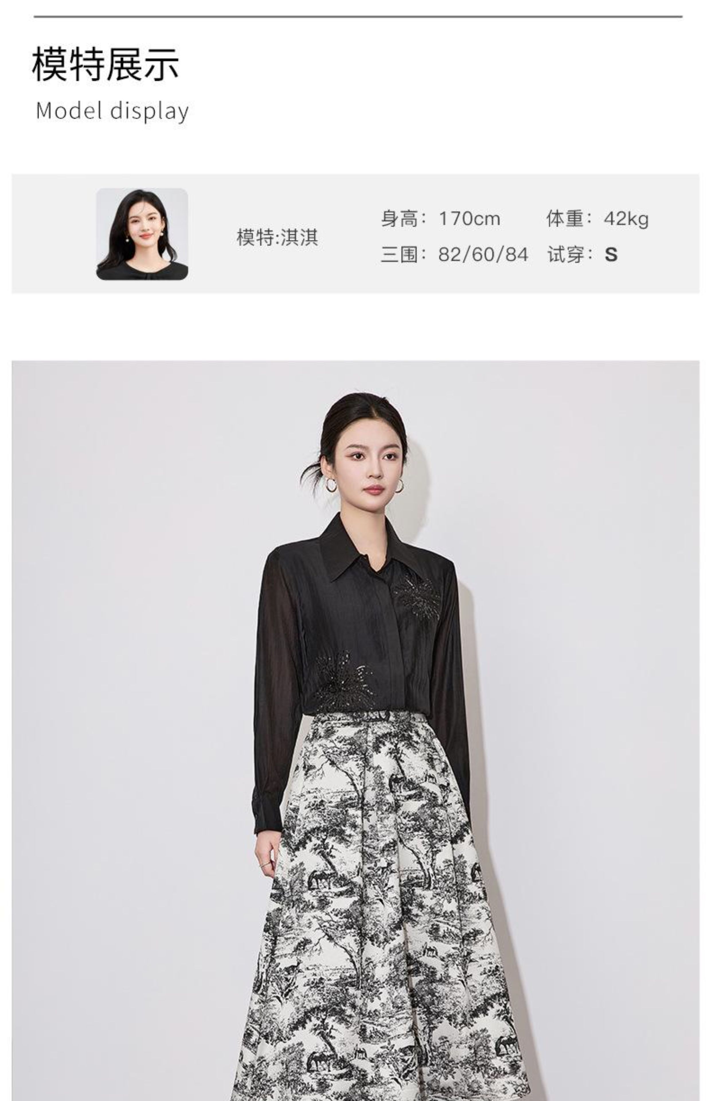 【高货wl】全新升级【铂金会员257/天猫339/差价82】(03909) 洛诗琳2025春季新中式水墨画浮雕提花优雅通勤遮肉半身裙