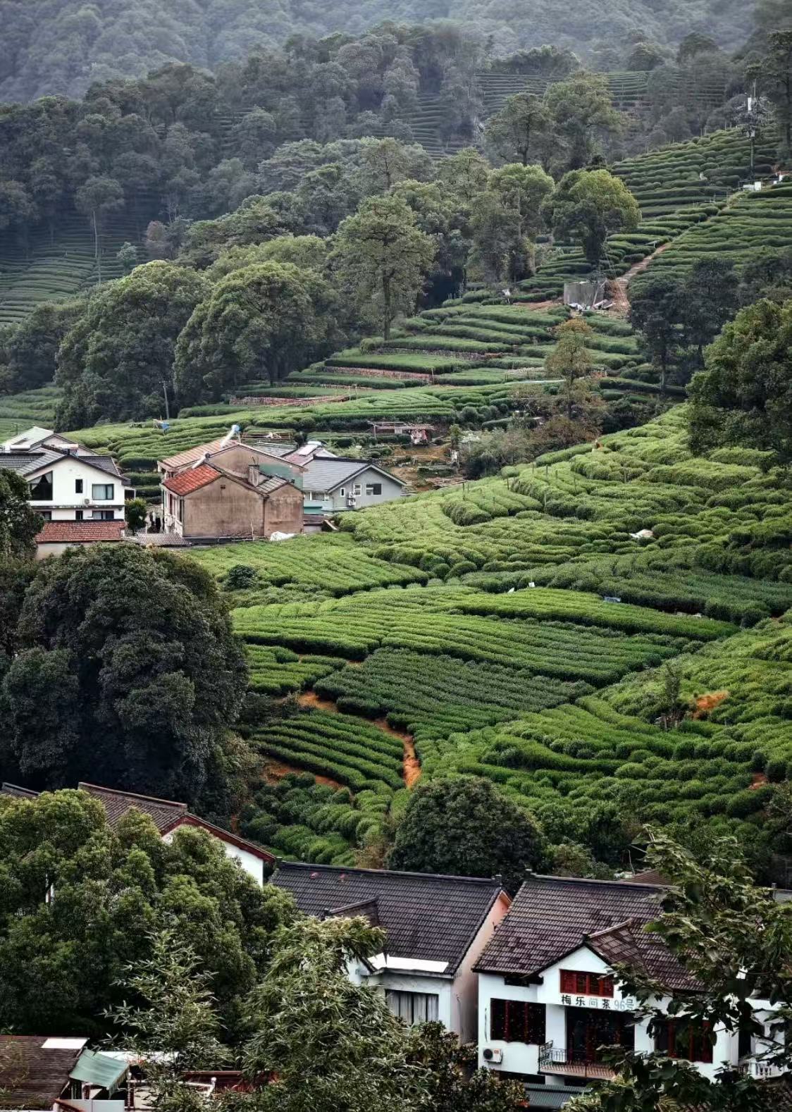 人文历史悠久、茶地山林相映,溪沟穿村而过,构成了梅家坞村独特的茶乡风情。