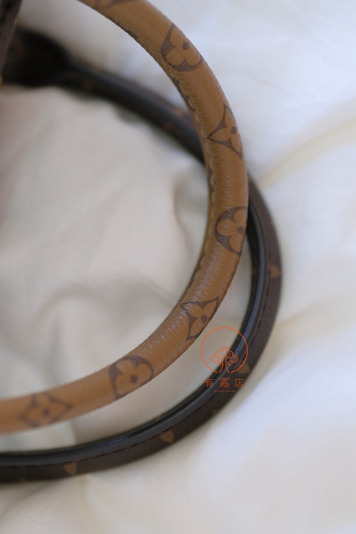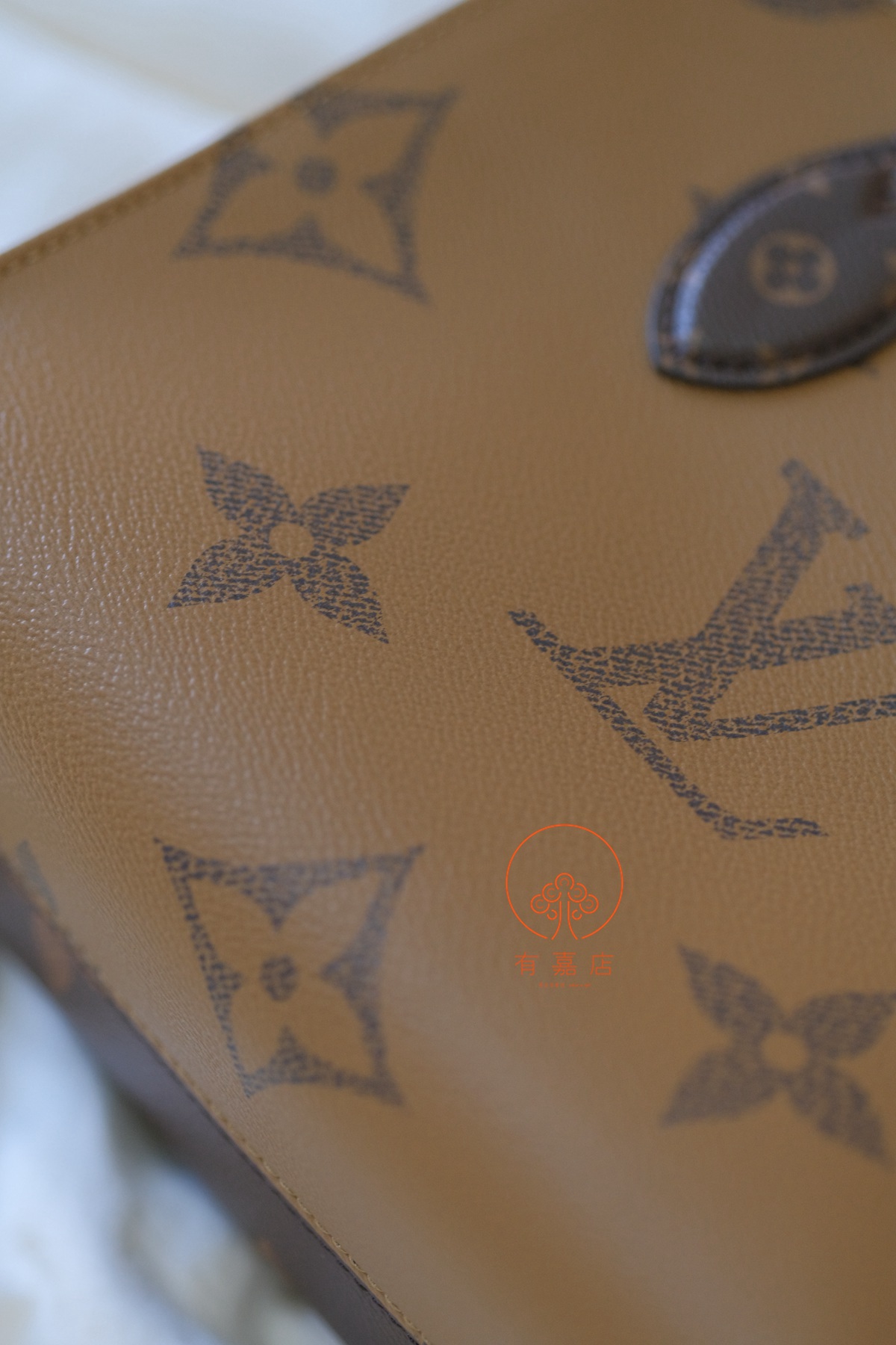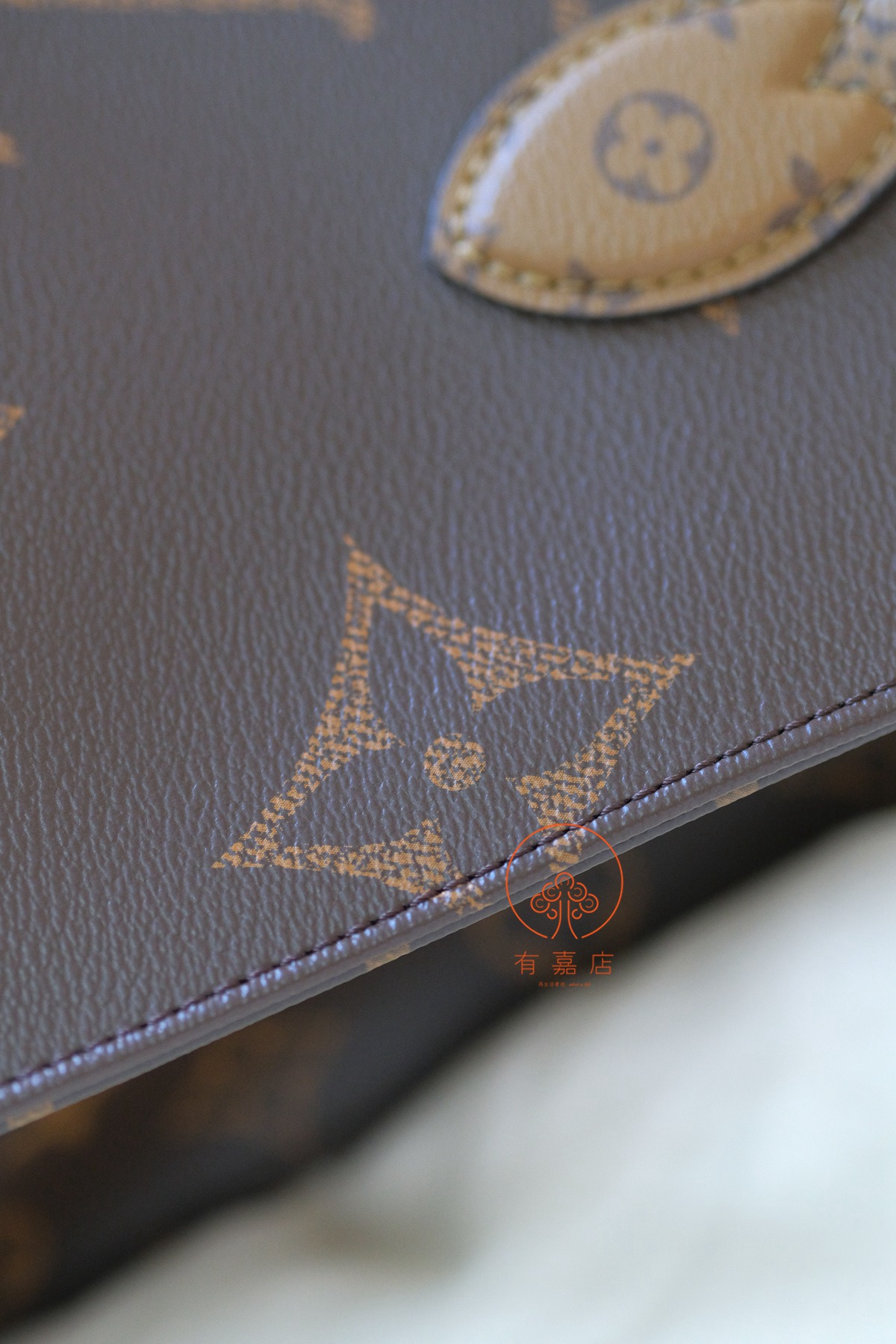 它是AB双面的(你说这是哪个会过日子的设计师想的?),分别是Monogram 与 Monogram Reverse 涂层帆布,深色面比较压得住,Reverse浅色面非常温柔,这不是等于买了两个包?可以用足四季,搭配各种服饰和场合。