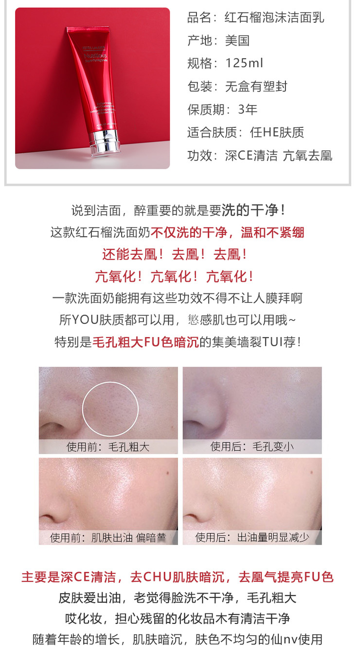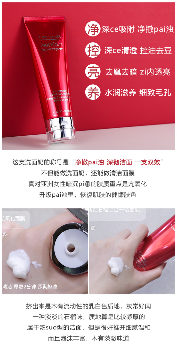专柜320 雅诗兰黛 红石榴泡沫洁面乳125ml 清洁补水保湿