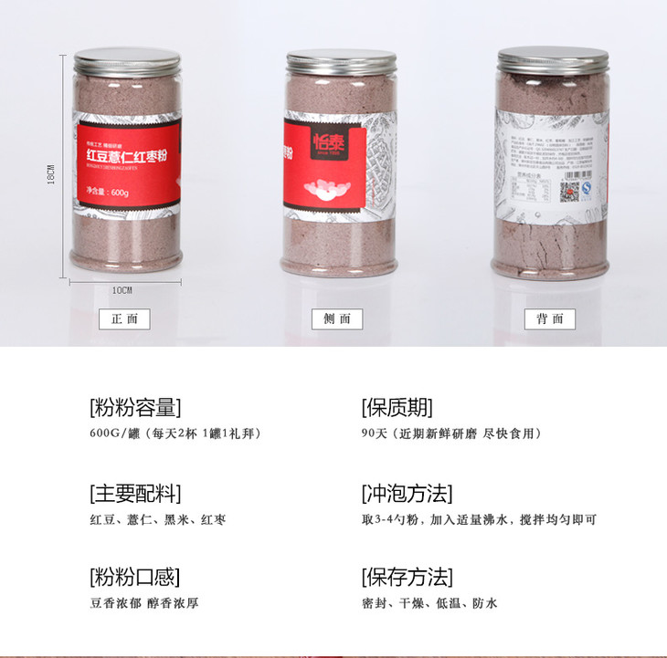 【常州馆】怡泰 红豆薏仁红枣粉600g 薏仁粉粥红豆红枣熟五谷杂粮根豆代餐粉营养冲饮料