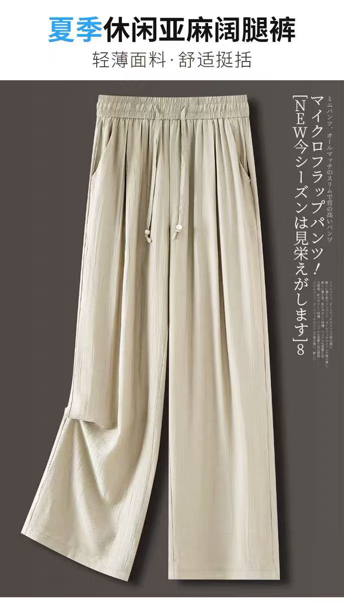 {休闲裤2025}8520夏季薄款压皱麻休闲直筒裤-喜出