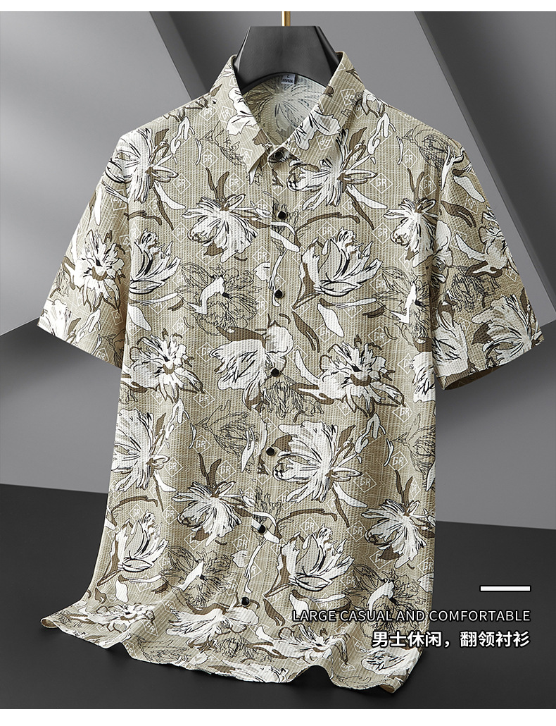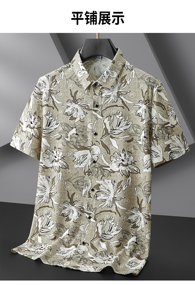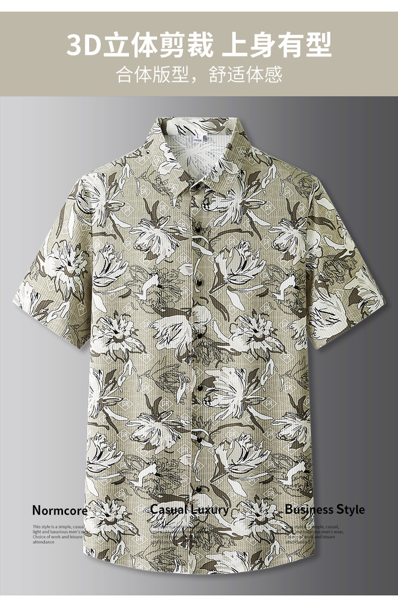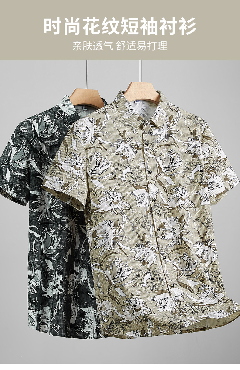 【DKP】大依优型大码短袖衬衫花衬衫冰丝凉感半袖衬衣男夏季加肥大码碎花打底衫肥佬宽松