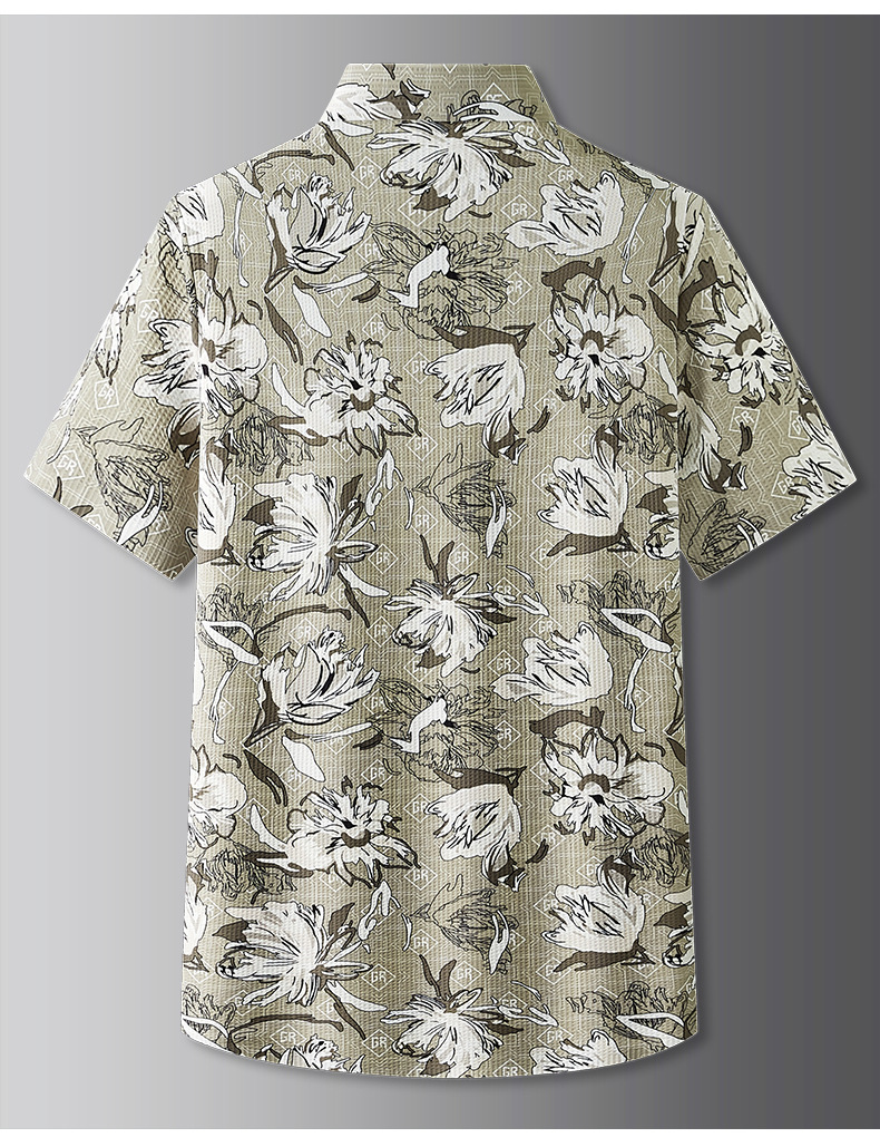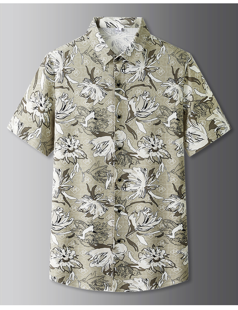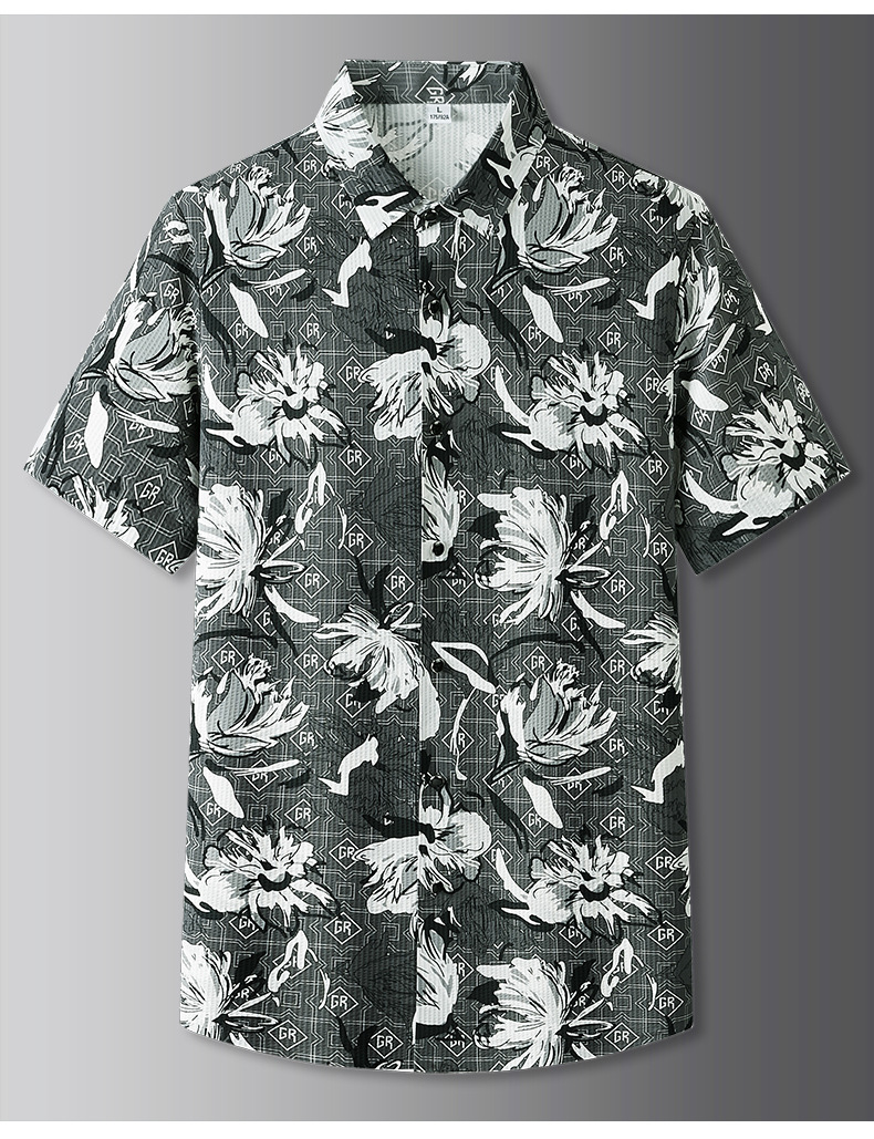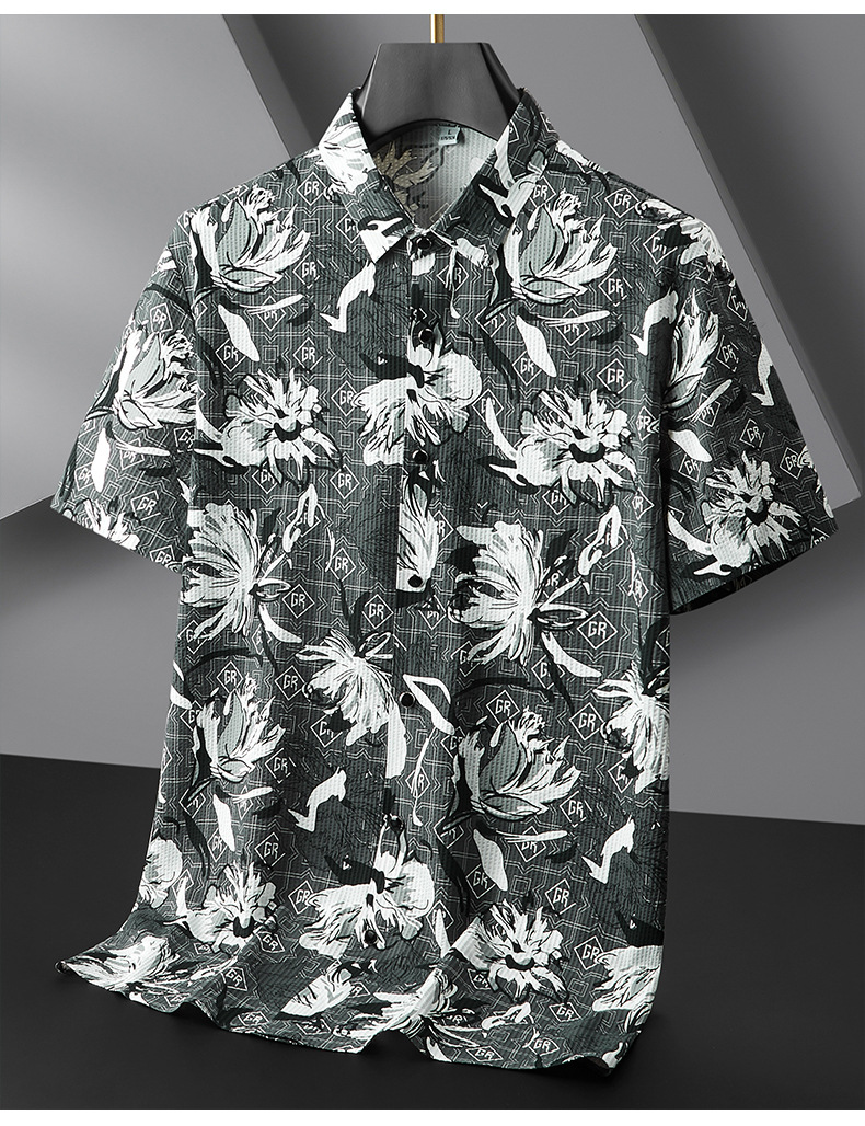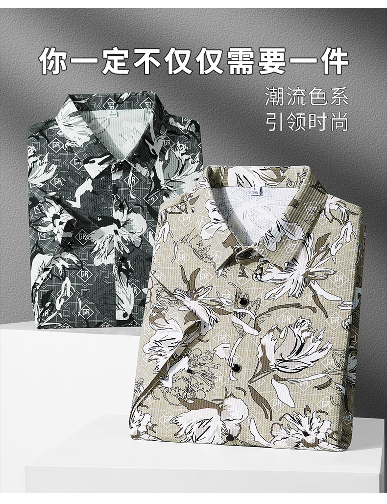 【DKP】大依优型大码短袖衬衫花衬衫冰丝凉感半袖衬衣男夏季加肥大码碎花打底衫肥佬宽松