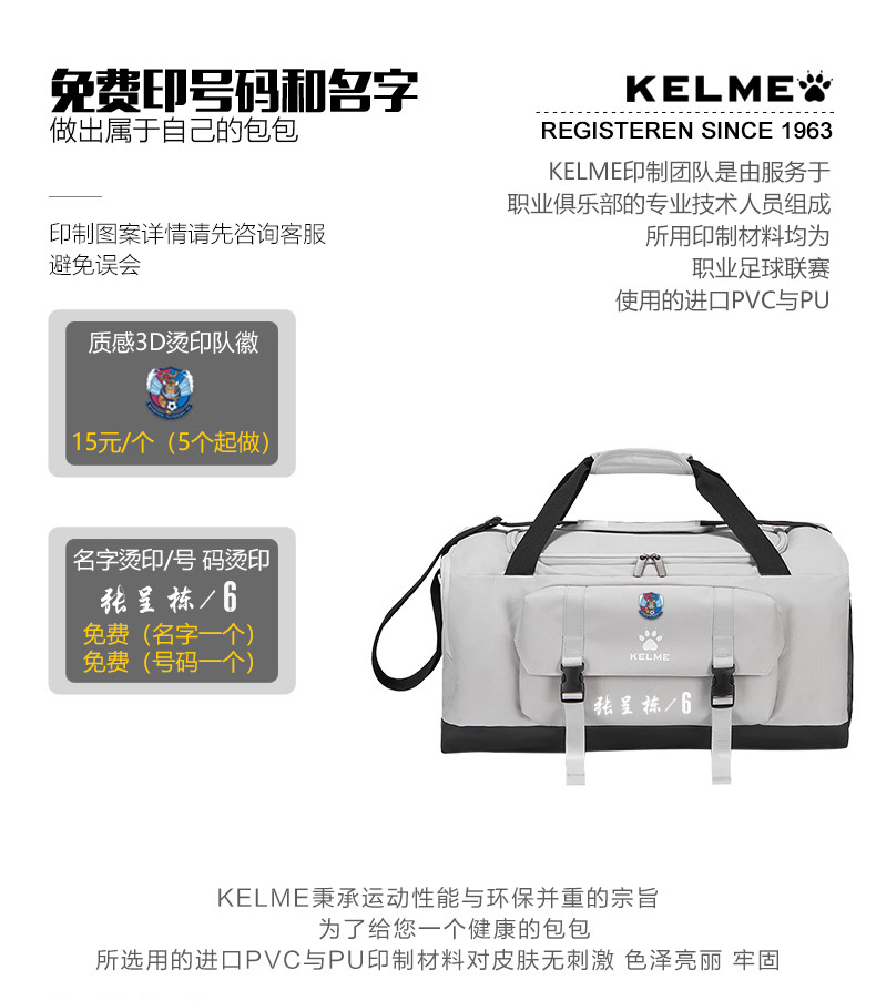 KELME卡尔美旅行包男运动健身背包出行手提行李大容量单肩斜挎包