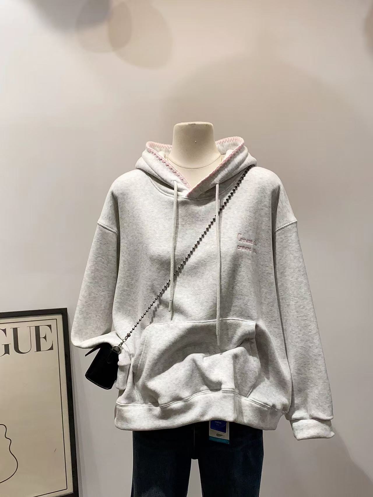 🔥🔥🔥奥粒绒厚款【重工刺绣】贝壳袖~花灰粉针织加绒连帽卫衣-喜出
