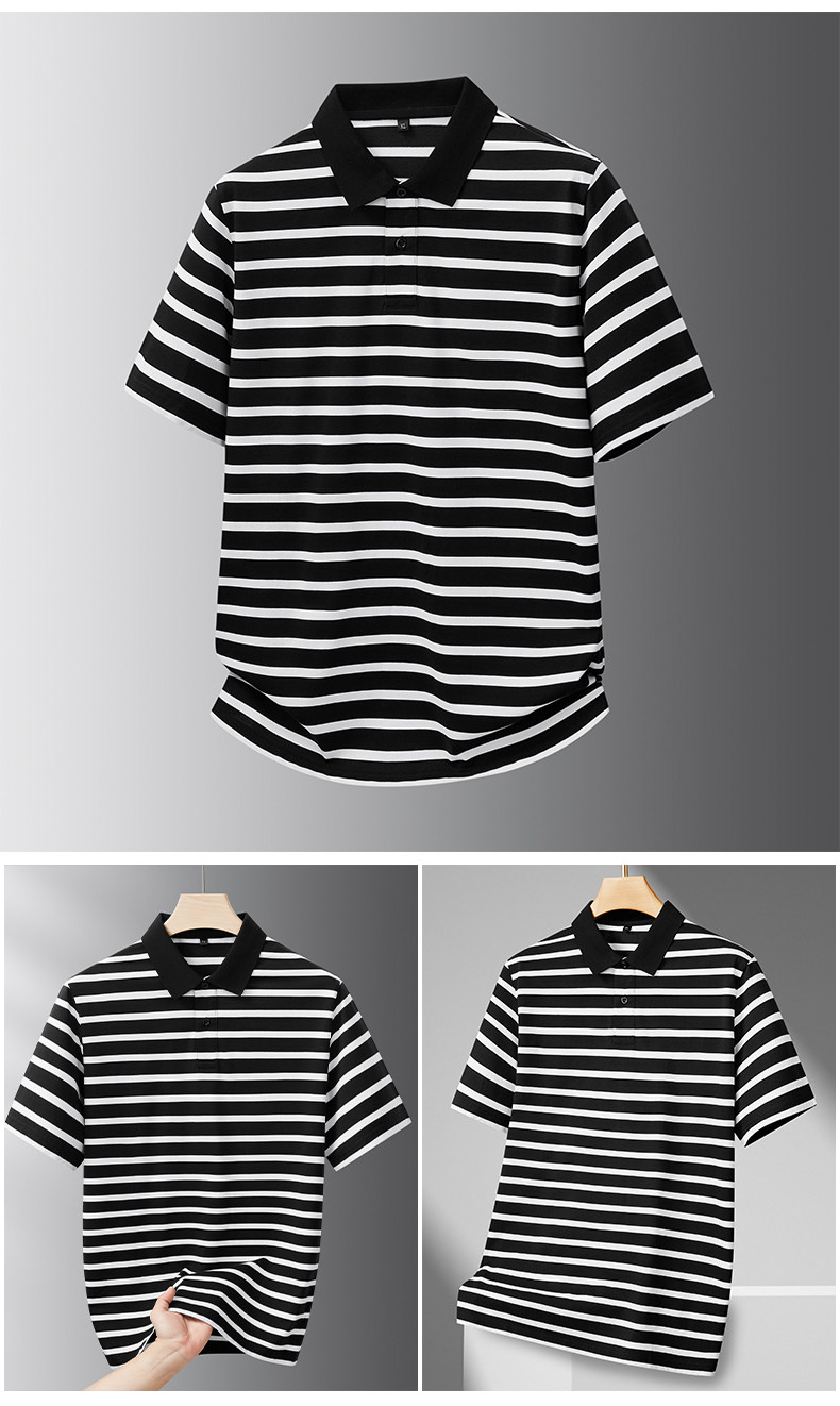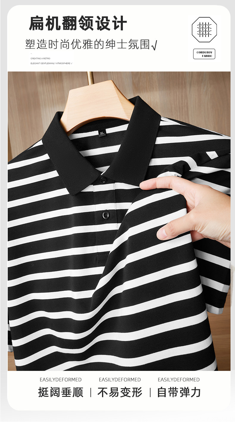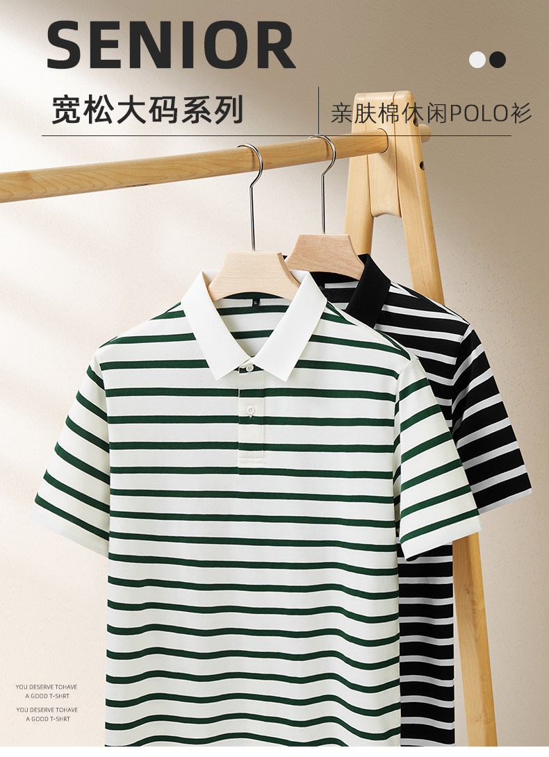 【DDS】【新疆棉】大依优型大码男装夏季翻领POLO衫条纹短袖百搭休闲上衣