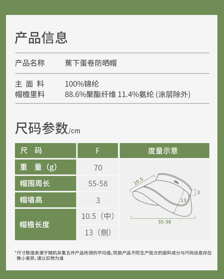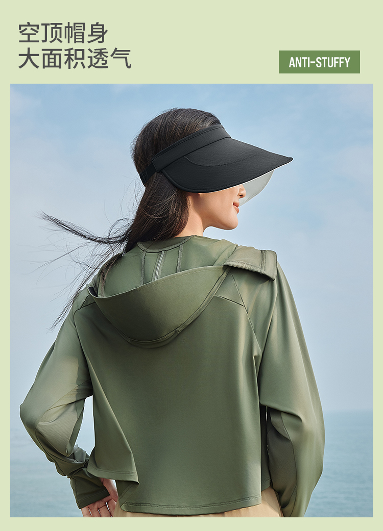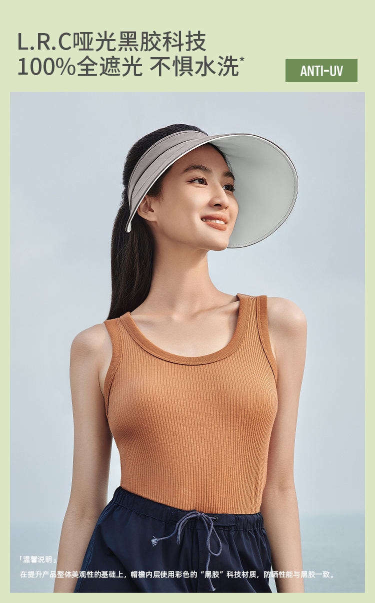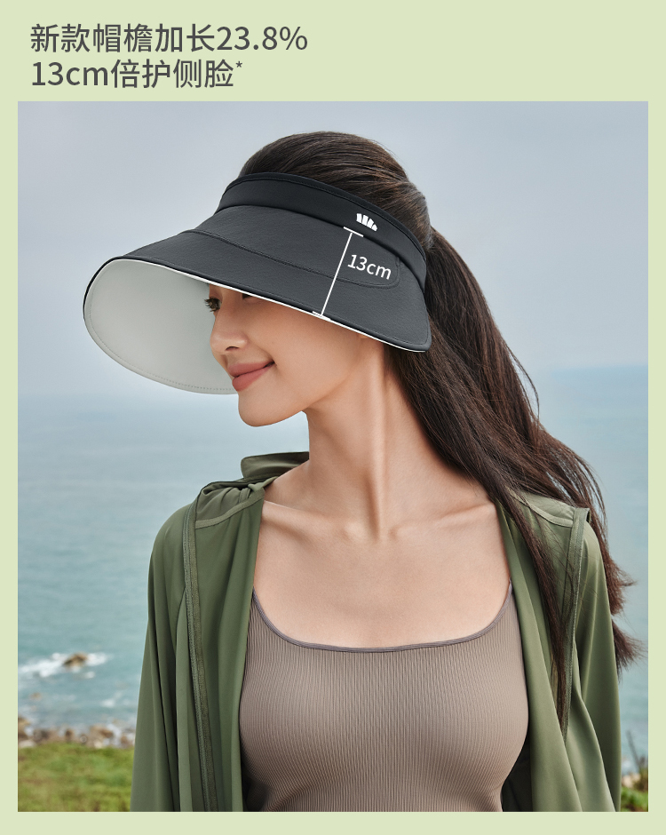 蕉下蛋卷帽BM55424黑胶防晒女可折叠防紫外线透气侧脸遮阳空顶帽