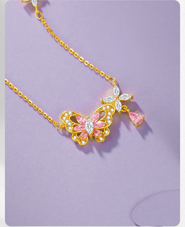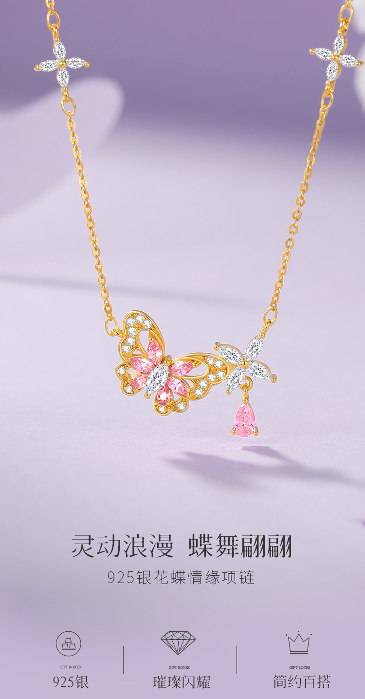 Winy s925银花蝶情缘项链送女友闺蜜节日生日礼物