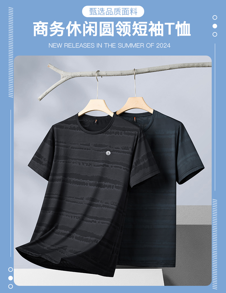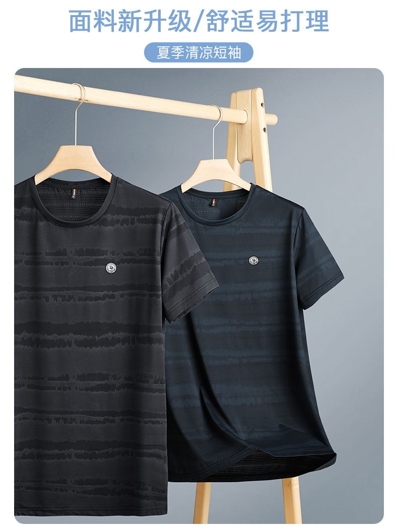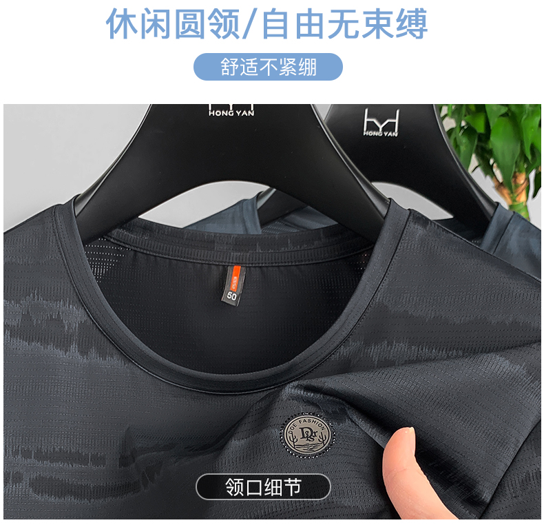 【冰丝高弹】【新款DPF】大依优型大码短袖T恤圆领加肥加大男装大号大码上衣男士休闲半袖夏季