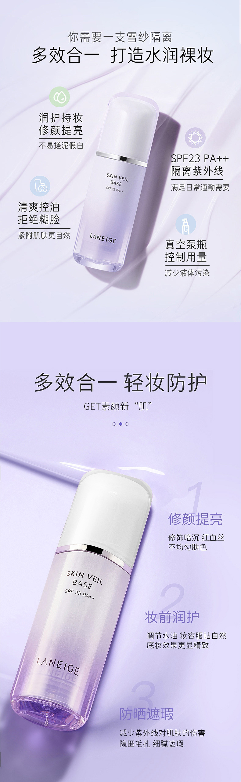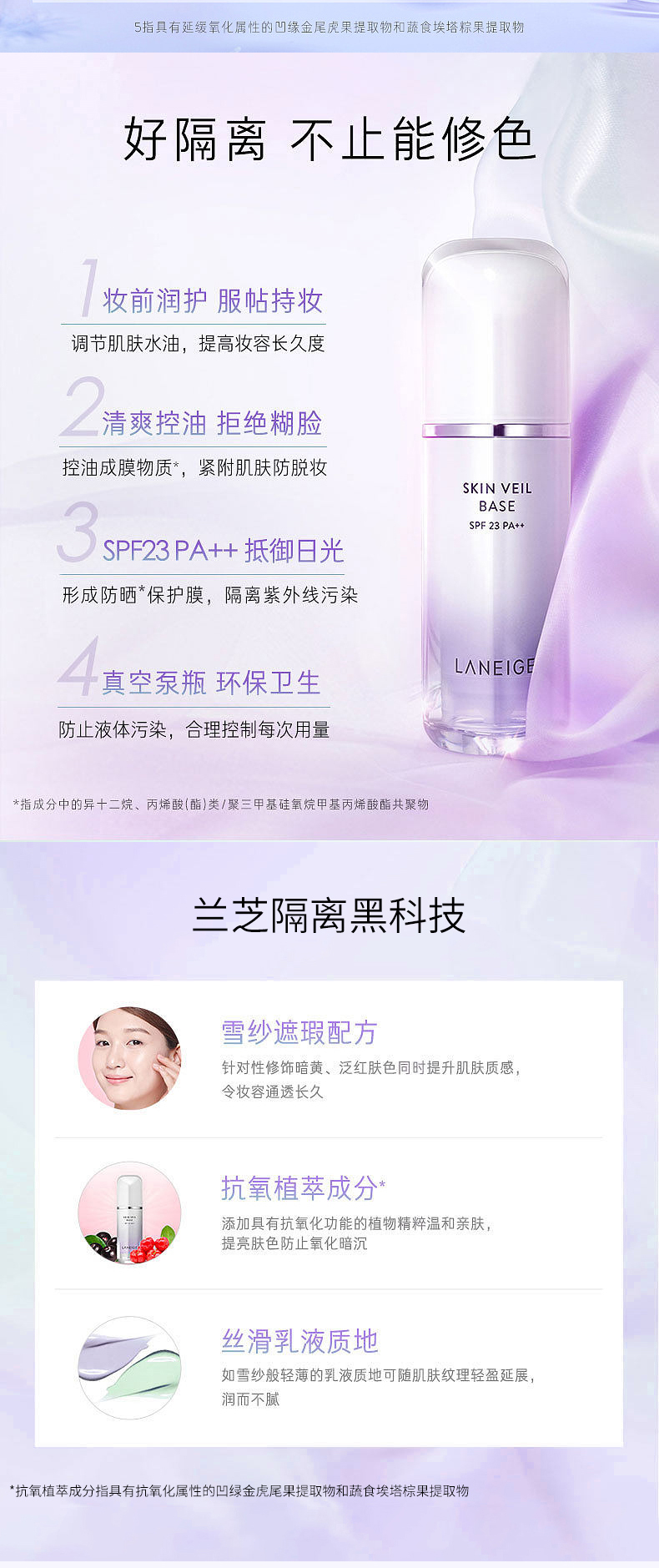 【年终限时大促】【香港直邮】兰芝雪纱隔离霜妆前乳打底修颜遮瑕防晒提亮肤色三合一
