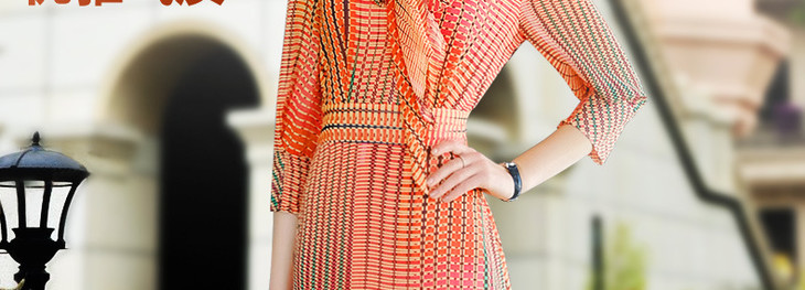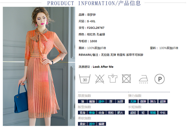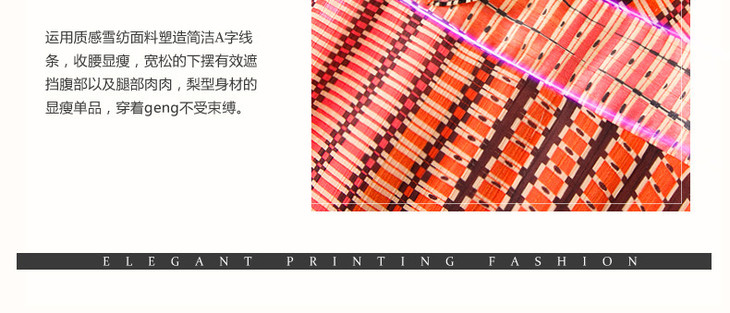 FMY-29767新款典雅端庄修身系带中长印花雪纺连衣裙