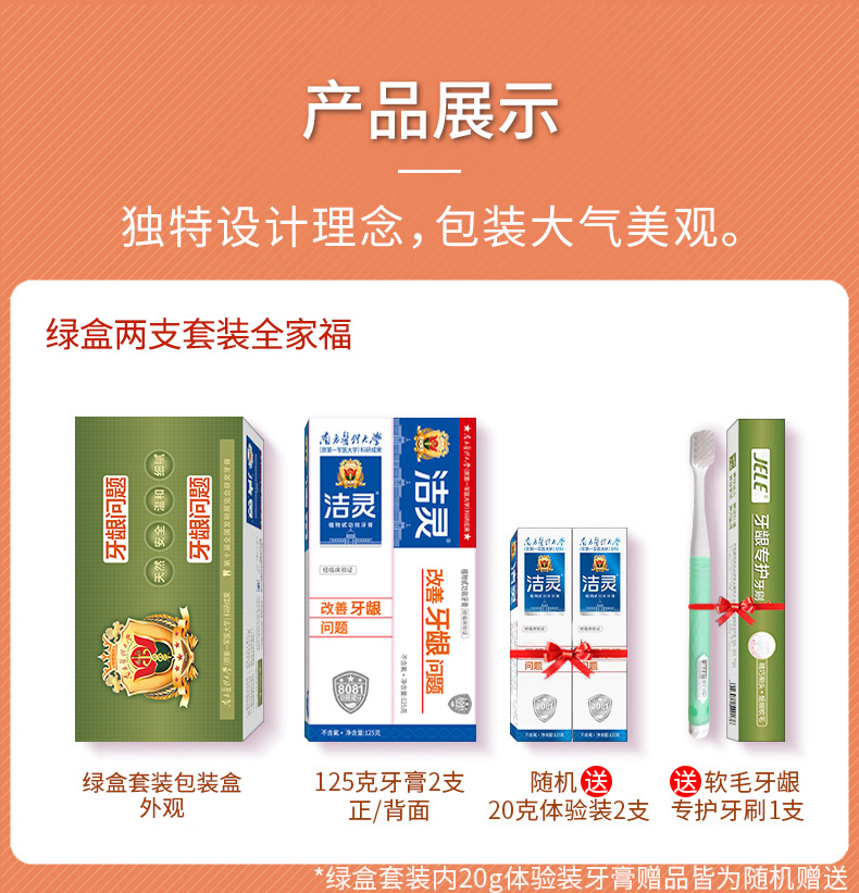 洁灵改善牙龈问题牙膏两支套装 口腔牙龈护理清洁植物甙功效无氟
