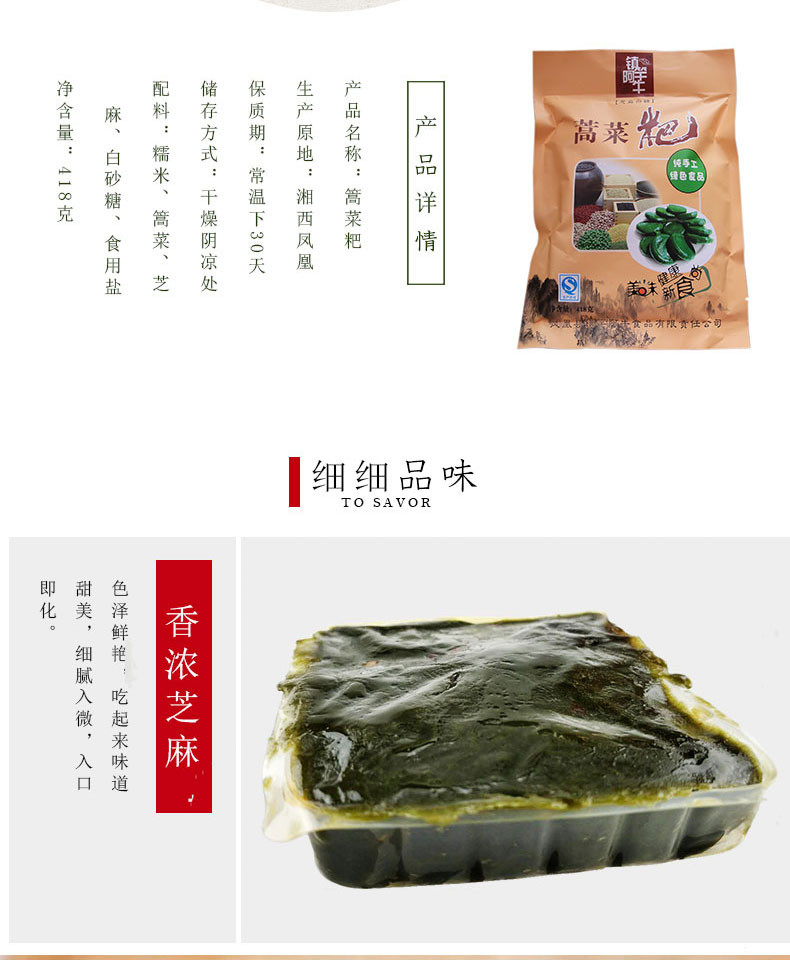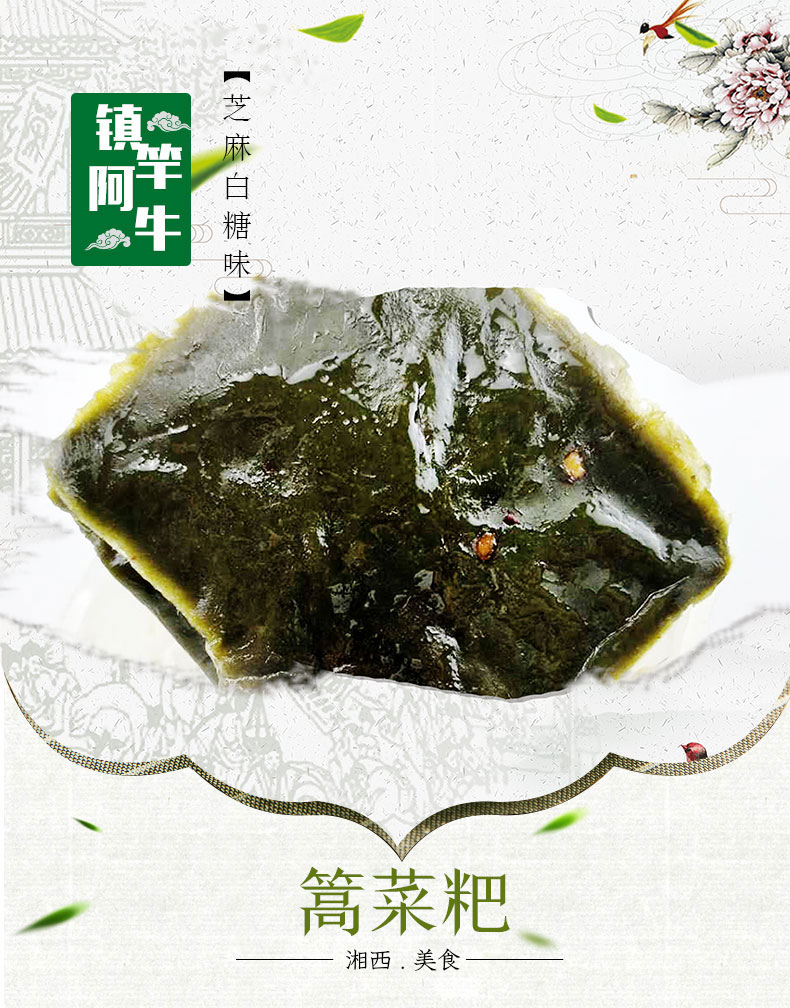 【凤凰古城特产】镇竿阿牛青蒿粑腊肉咸菜味/芝麻白糖味418g/袋