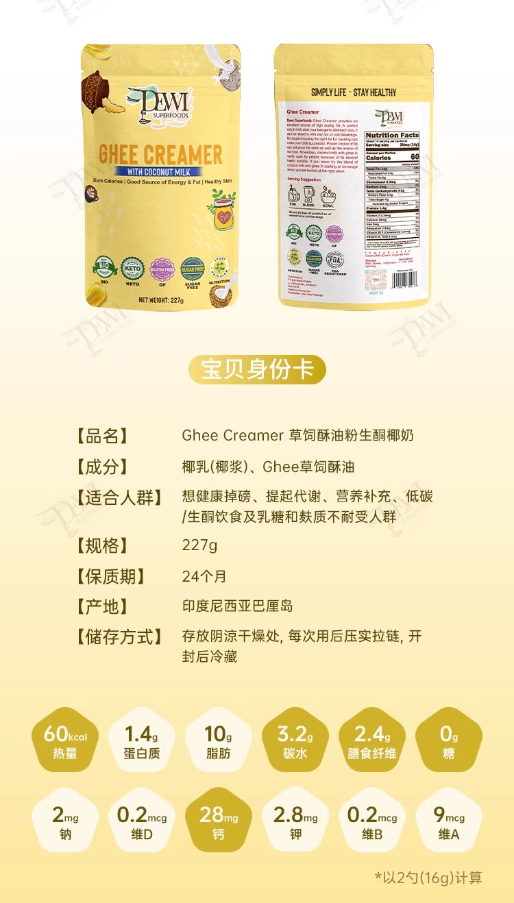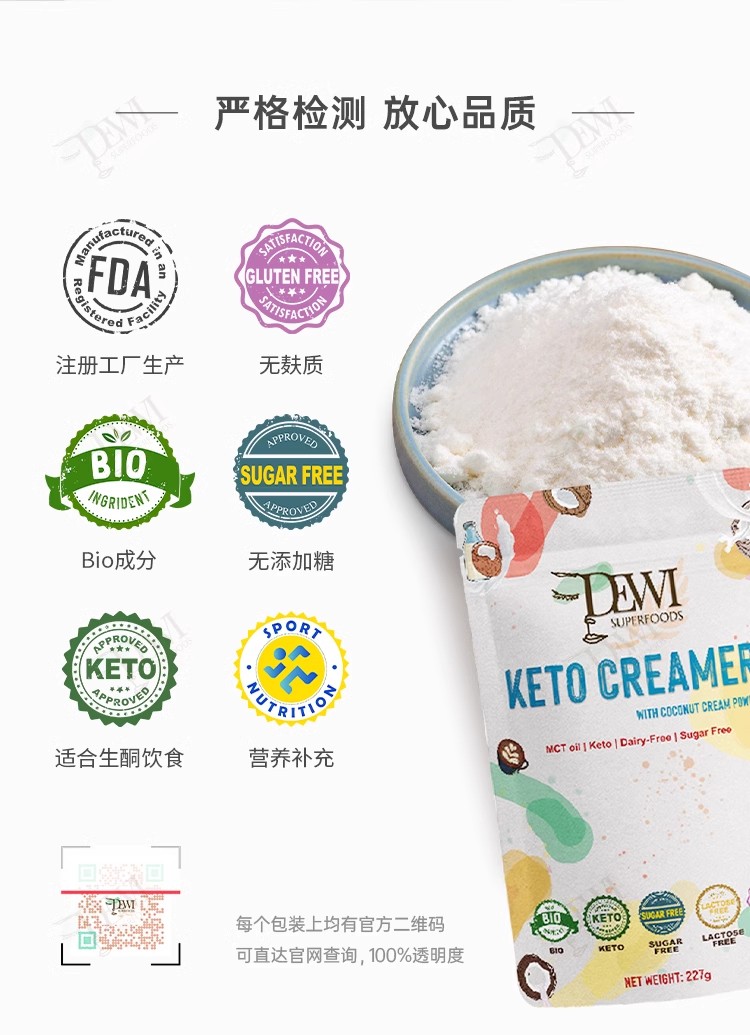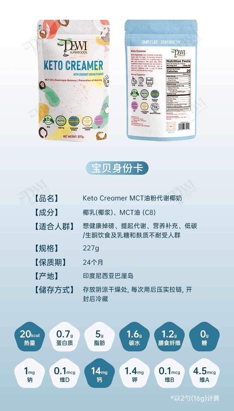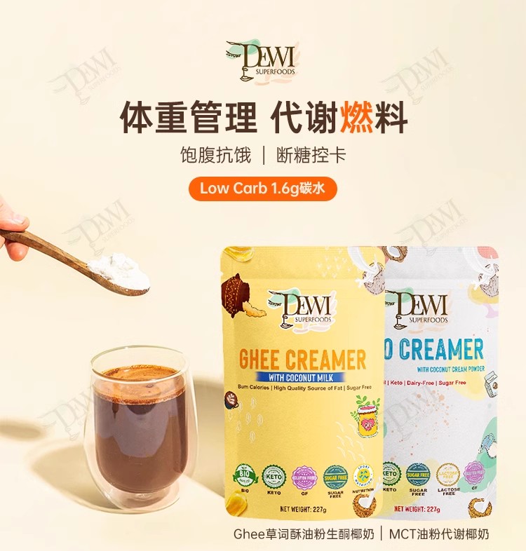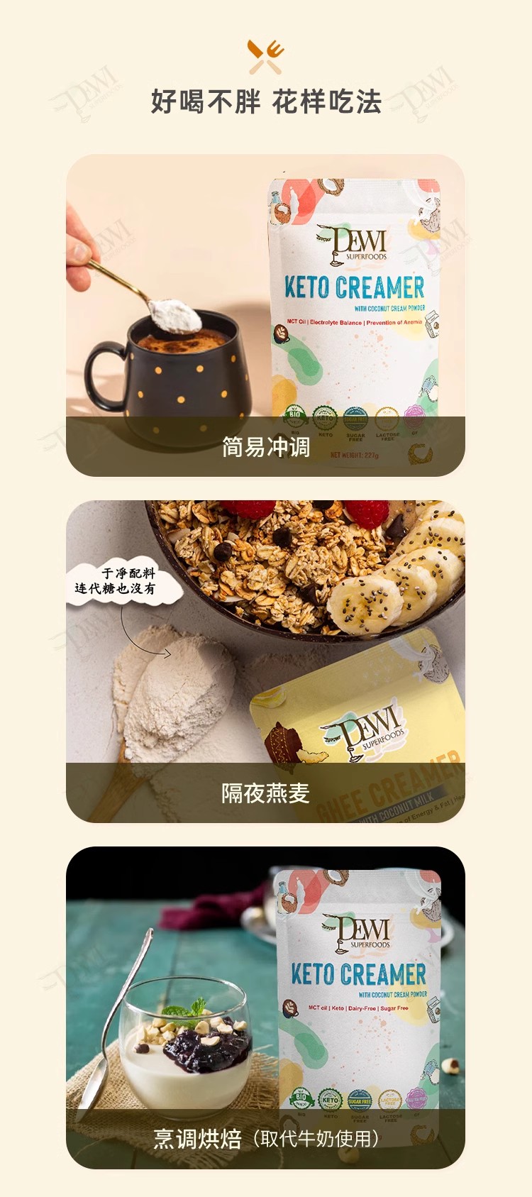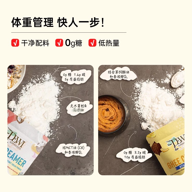 Dewi黛维生酮MCT椰奶粉轻碳无糖添无麸质香浓速溶椰浆粉