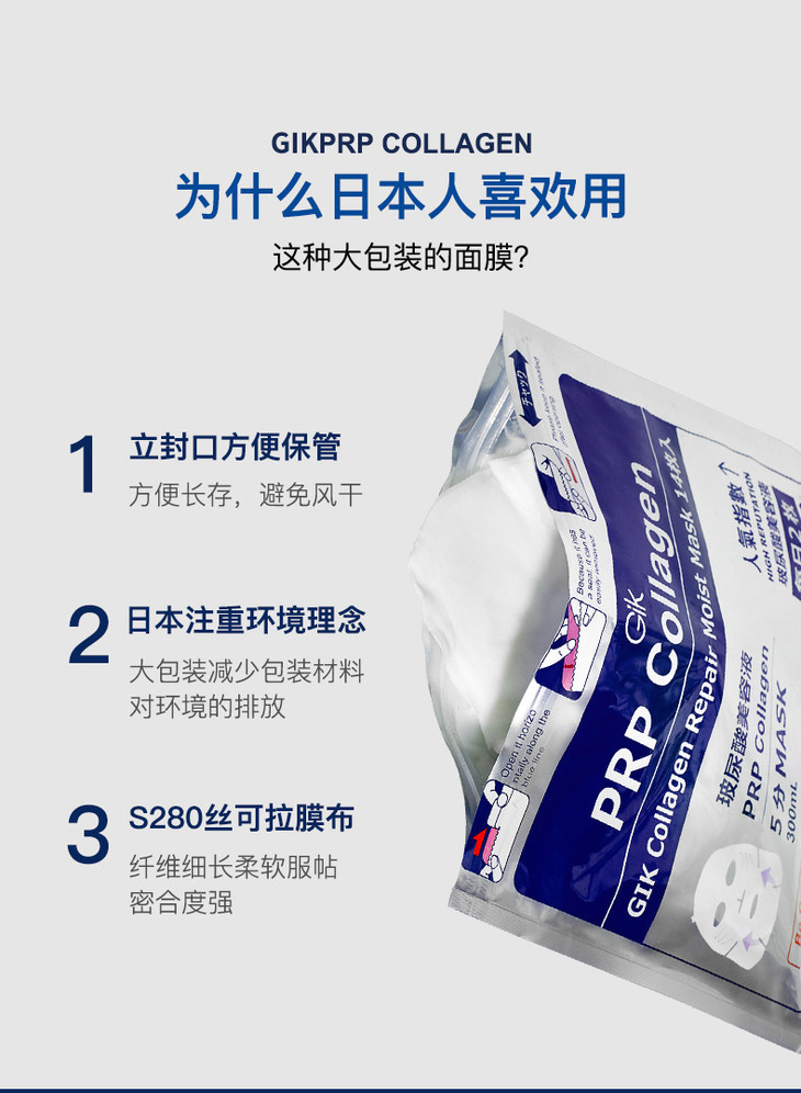 日本GIK PRP玻尿酸美容液面膜,富含PRP蛋白及玻尿酸,提亮焕颜,满满胶原蛋白敷回来! 商品图0