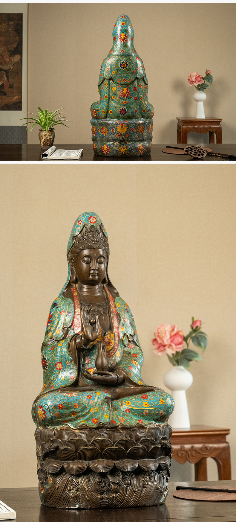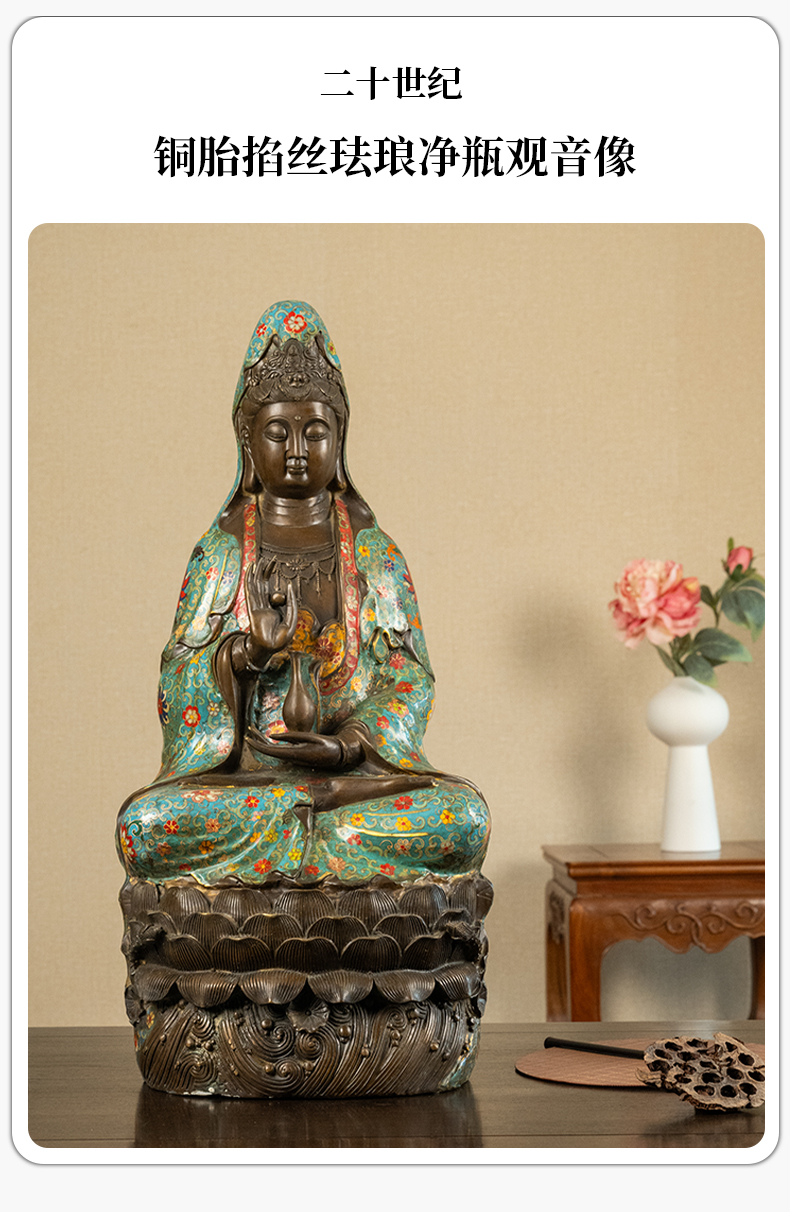 二十世纪 铜胎掐丝珐琅净瓶观音像