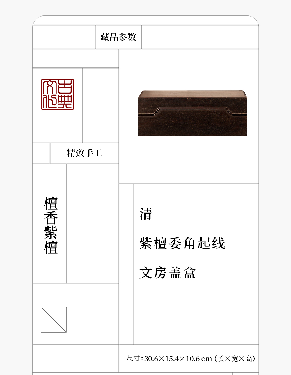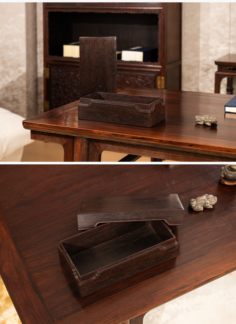 清 紫檀委角起线文房盖盒