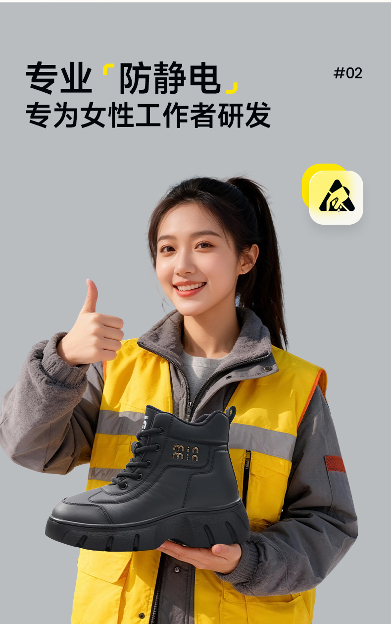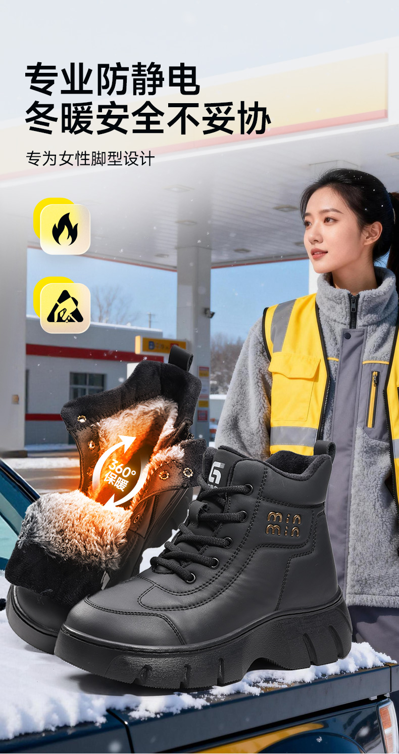 休闲系列冬季防静电女款不防砸不防刺橡胶底耐磨防滑加绒