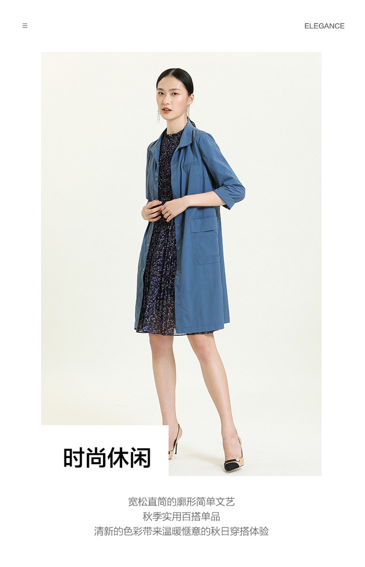 乔万尼风衣女气质流行收腰直筒薄款外套中长款夏ES2A186