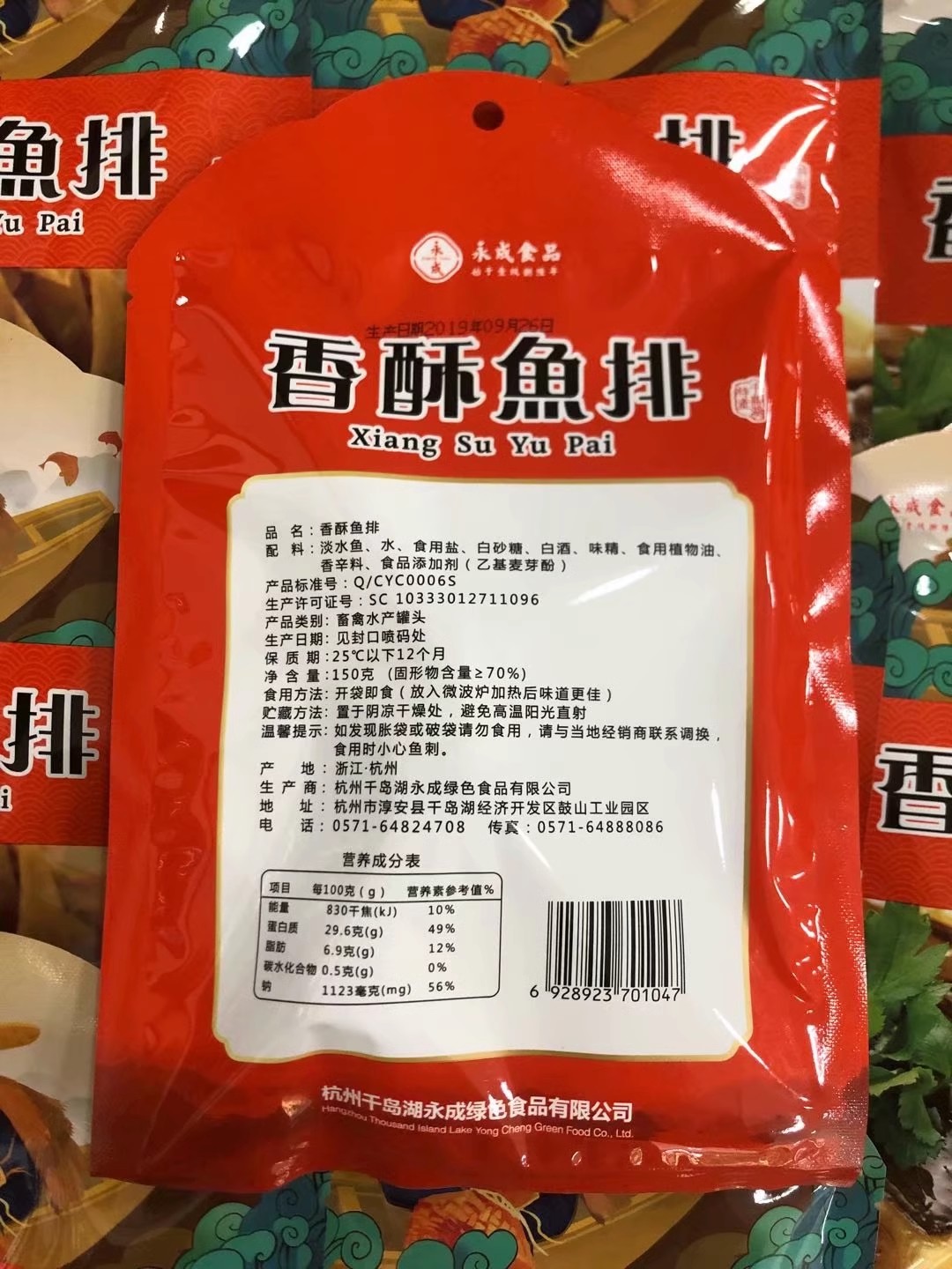 千岛湖特产永成香酥鱼排150g鲢鱼鳙鱼螺蛳青鱼即食鱼零食*2