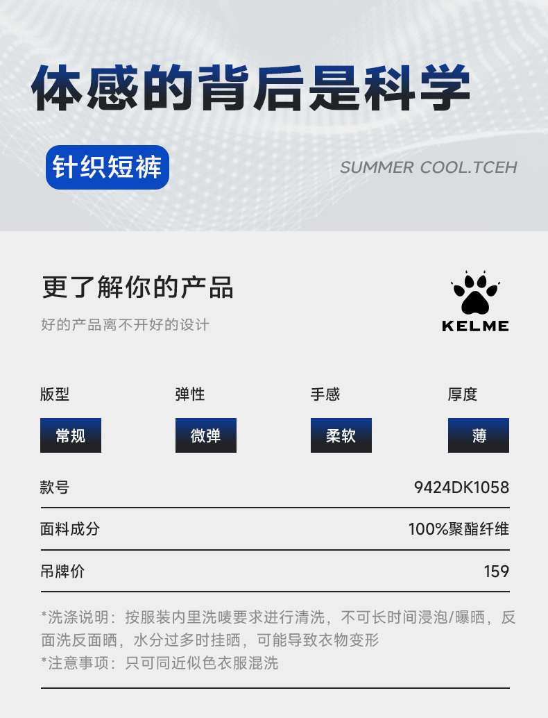 kelme卡尔美男子篮球短裤运动训练五分裤速干宽松针织跑步健身裤
