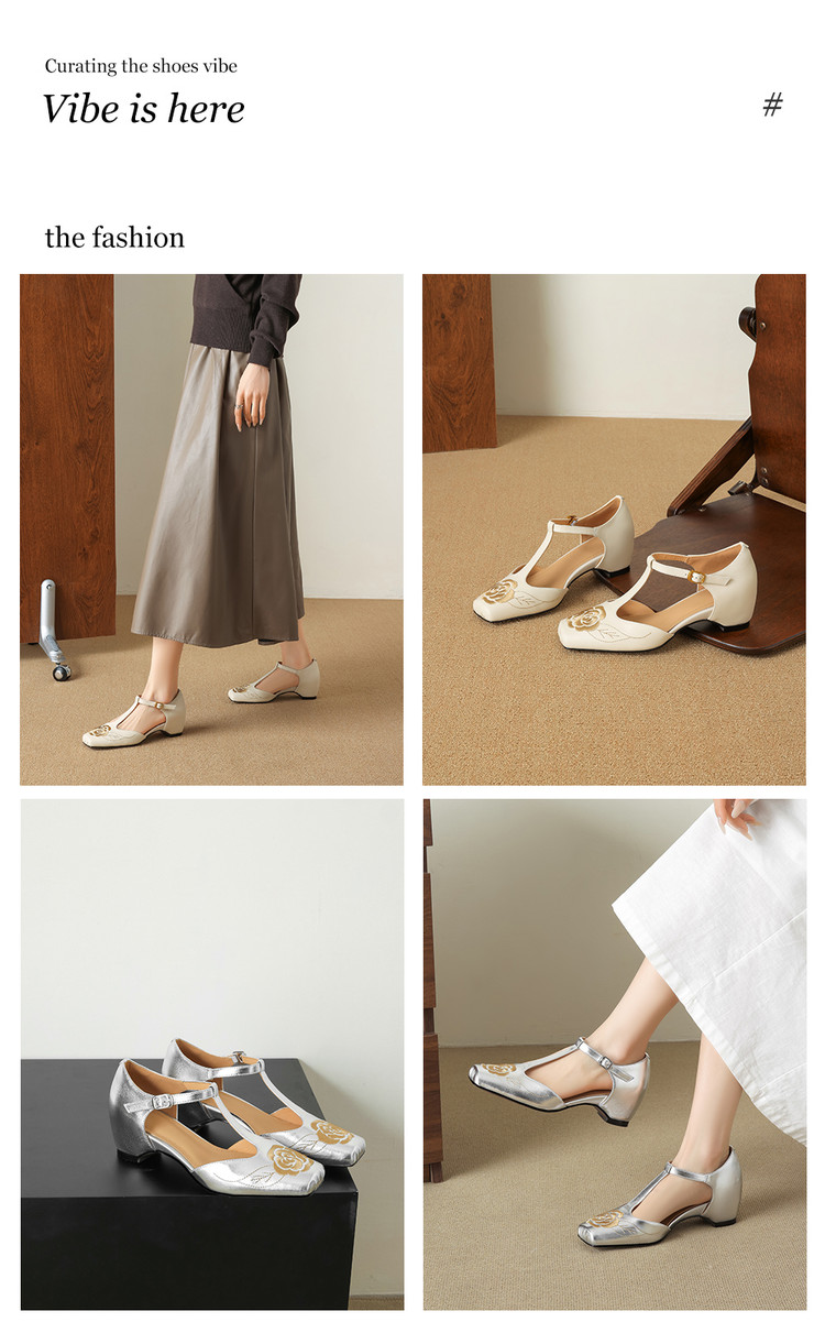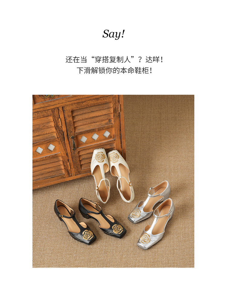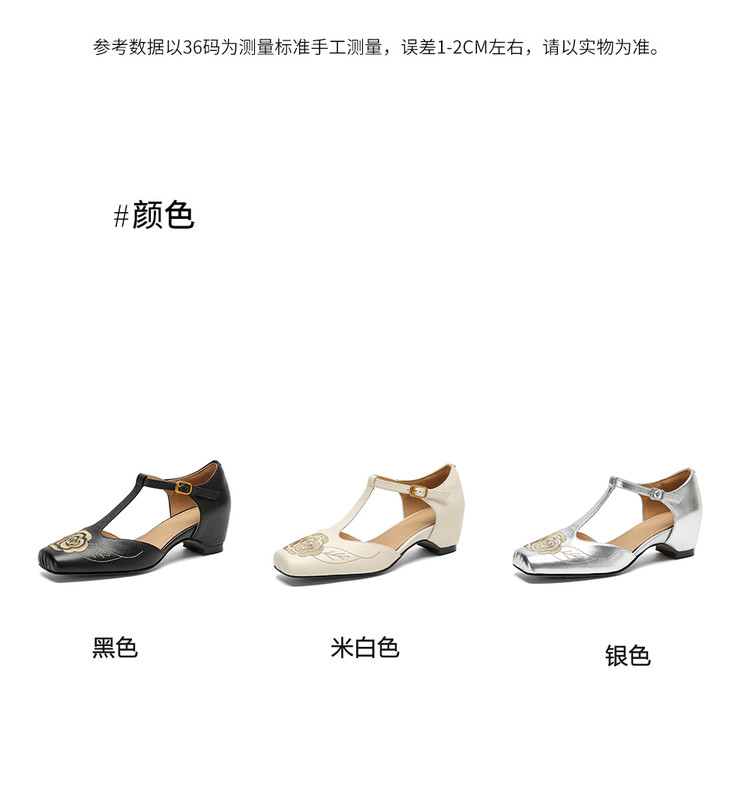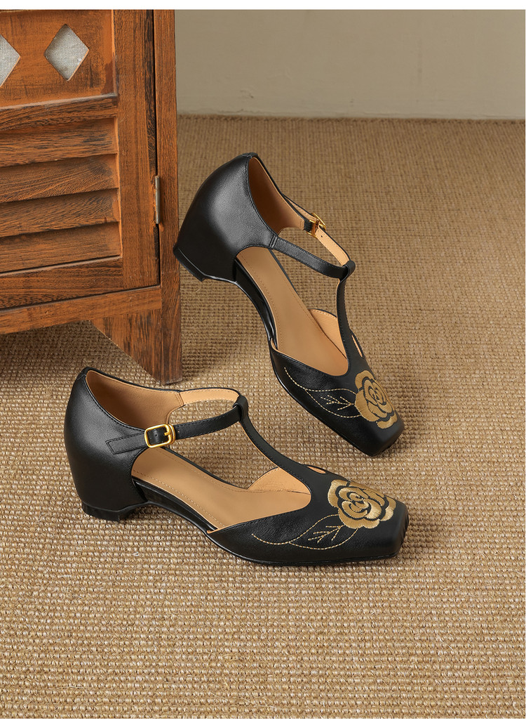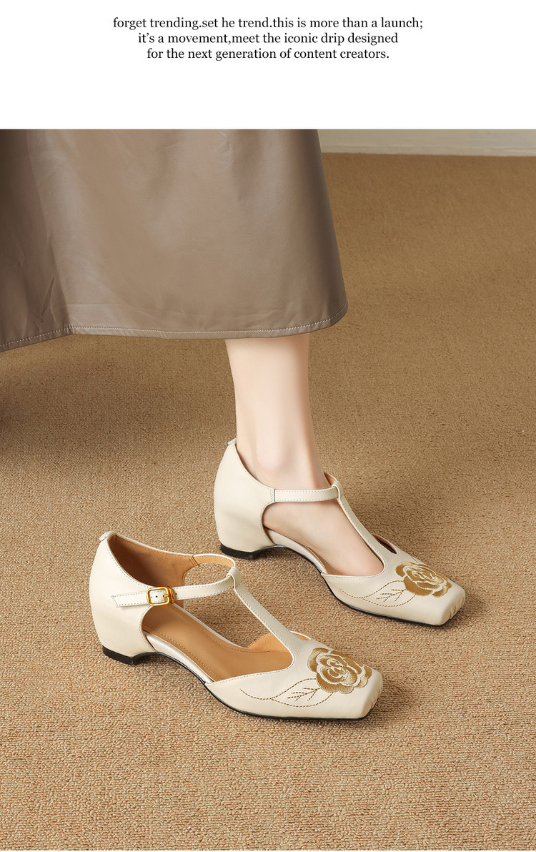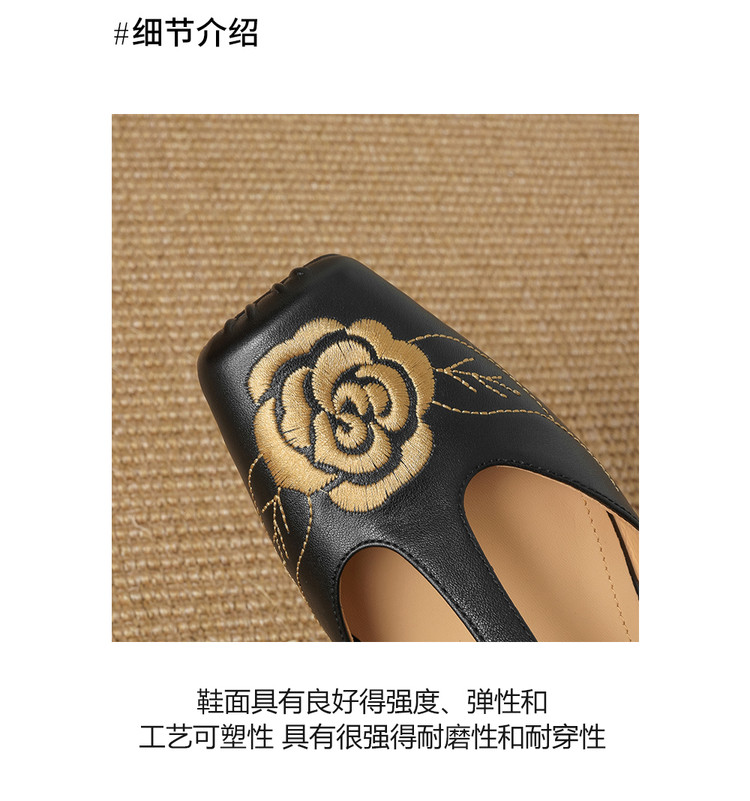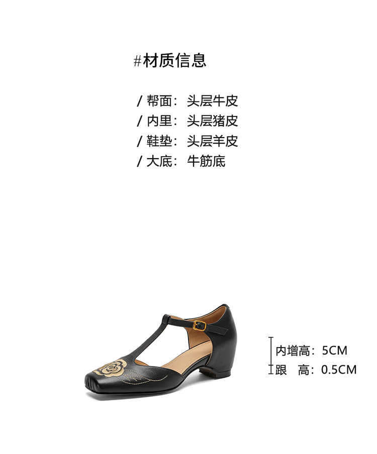 【预售5天】优雅风包头内增高凉鞋女真皮春夏季方头花朵刺绣法式罗马鞋YCJX&H-8972