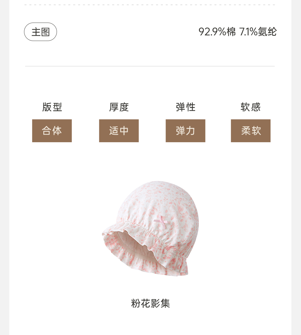 [商场同款]英氏婴幼儿圆帽女宝宝可爱碎花帽子胎帽春夏2024新款