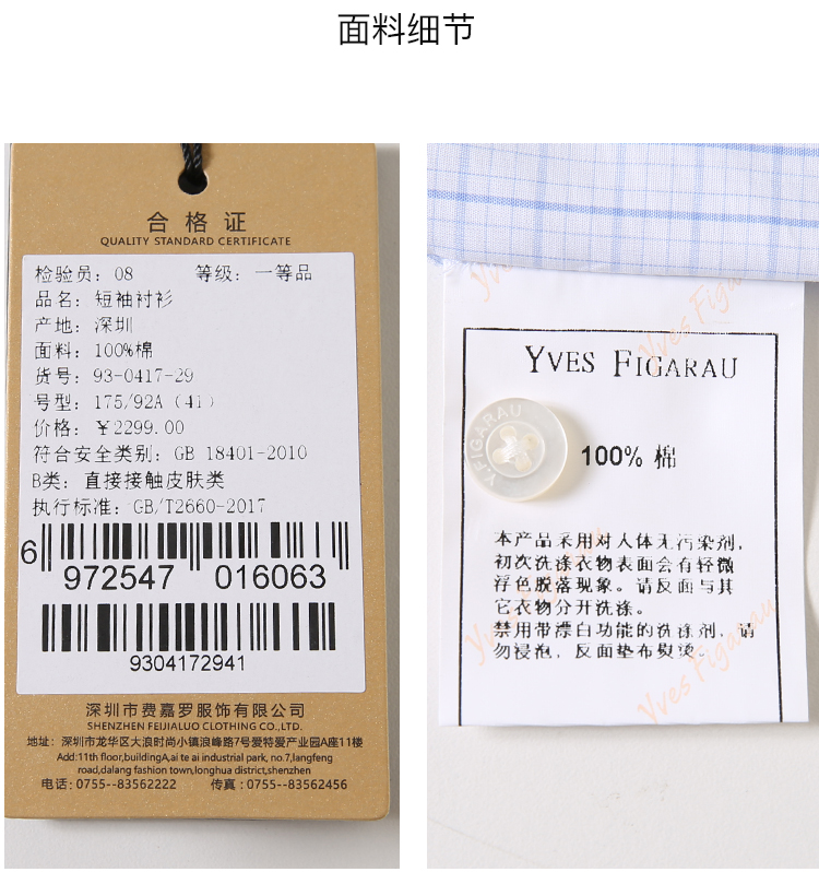 YvesFigarau伊夫·费嘉罗正装短袖衬衫930417