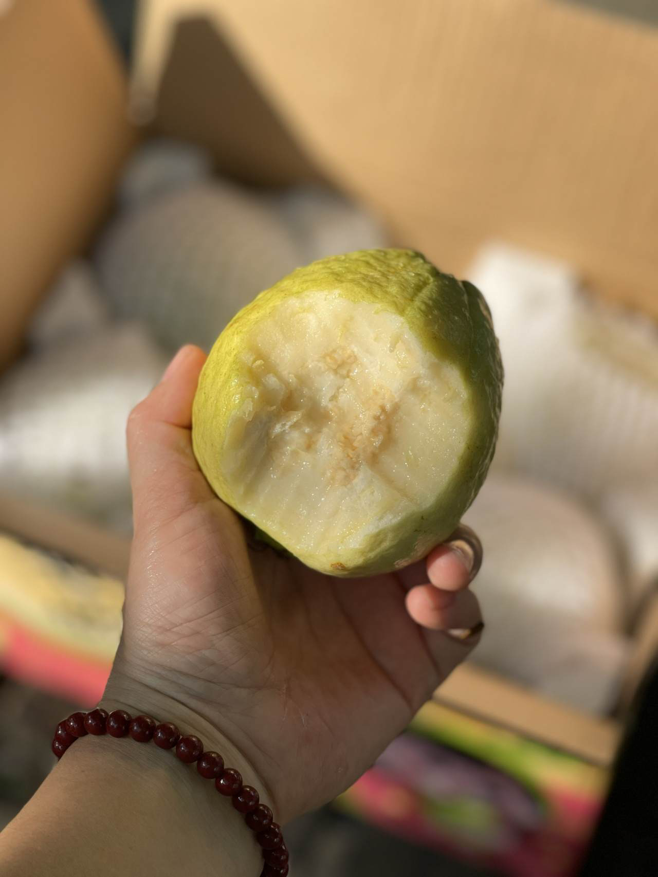 甄选自优质产地:它产自广西东南部的北流县,这里刚好在南亚热带季风气候区域内。土地肥沃、日照充足、降水量丰富,年平均温度在约21-28度,非常适合芭乐生长