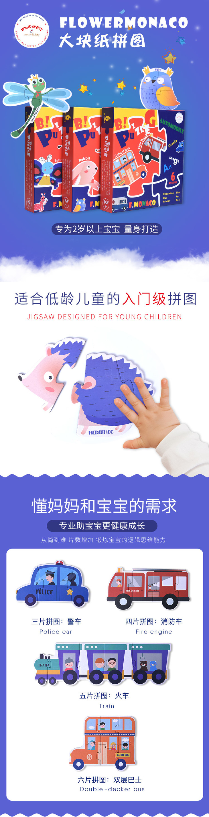 费乐2岁+宝宝入门级大块装原生纸浆拼图