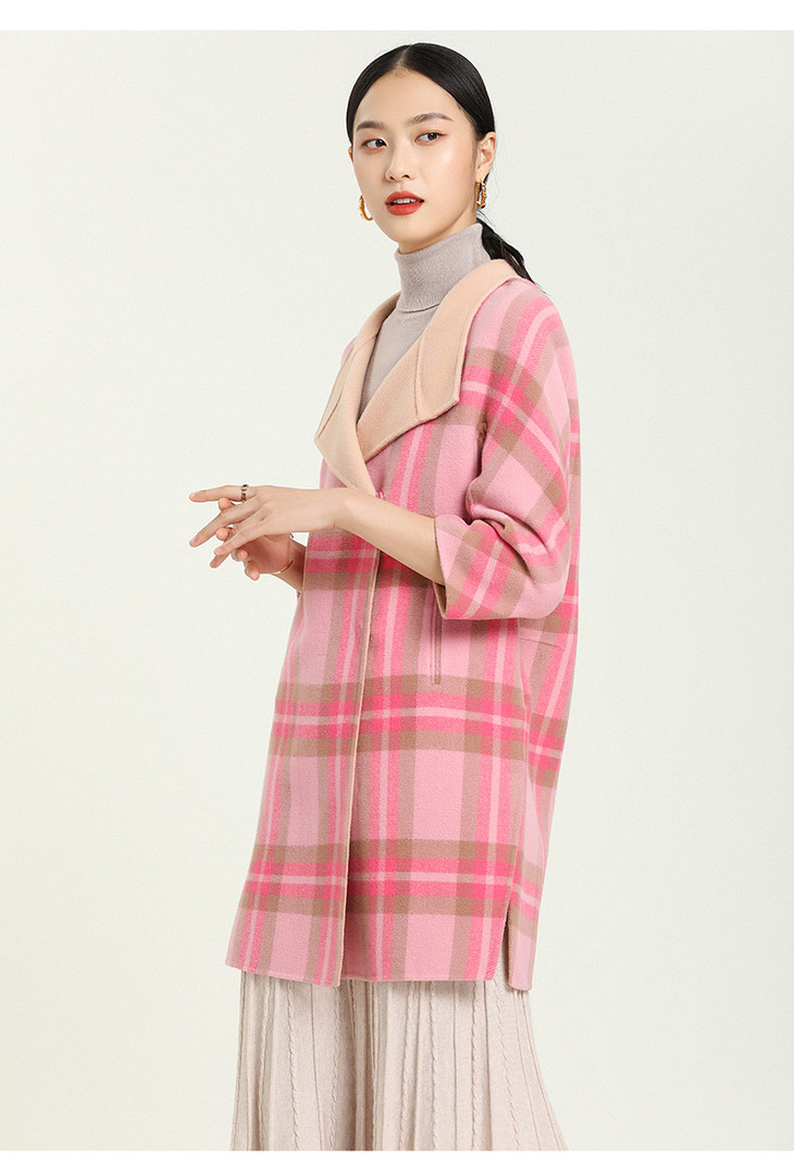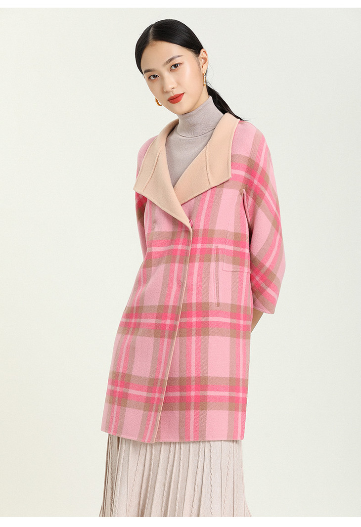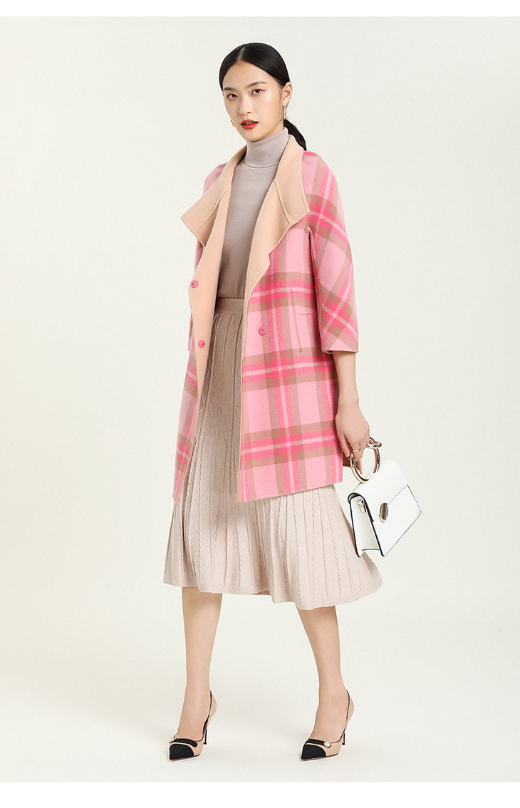 乔万尼格纹双面呢羊毛中长款大衣E154A202