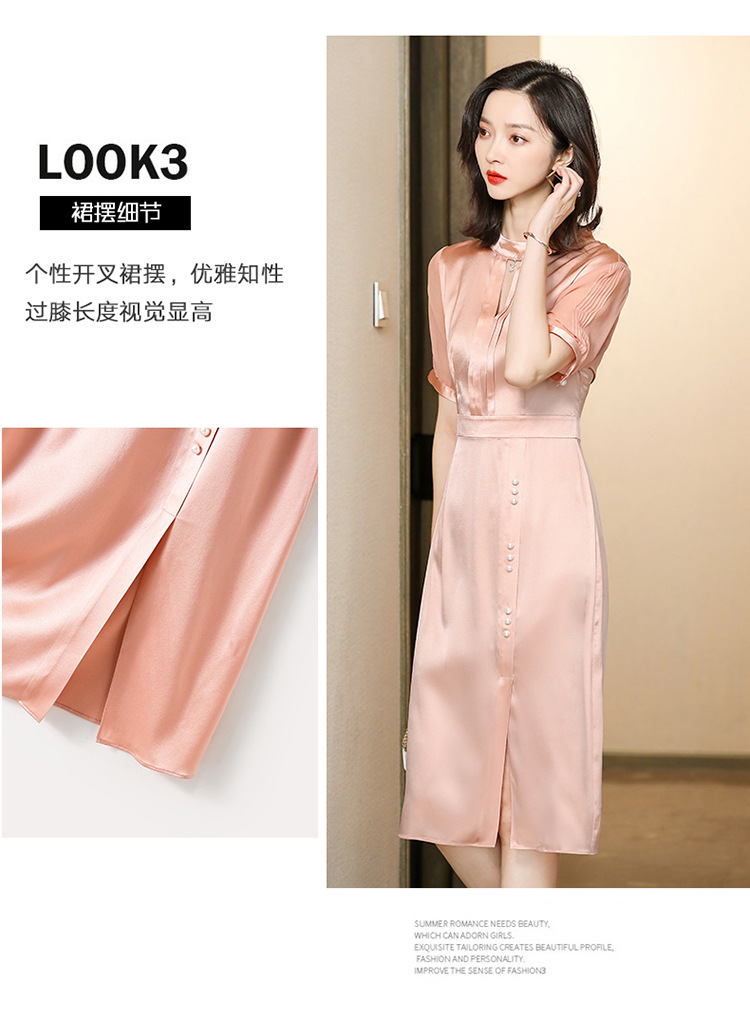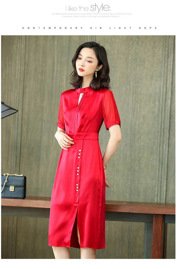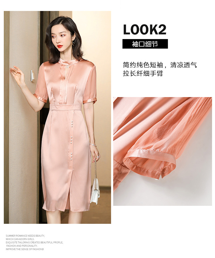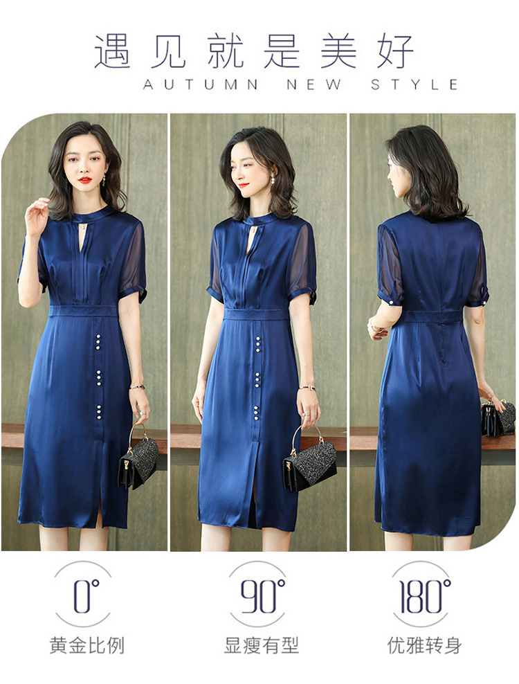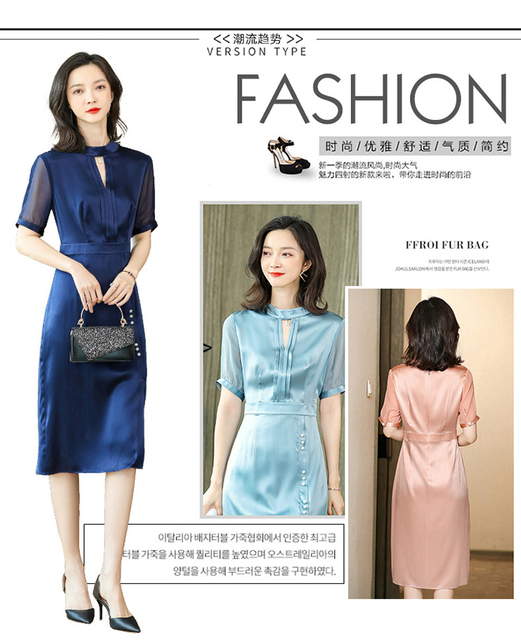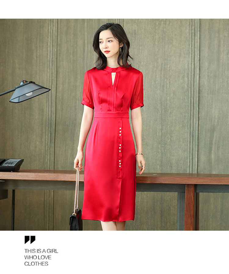 HRFS-WA66369新款镂空圆领优雅真丝连衣裙