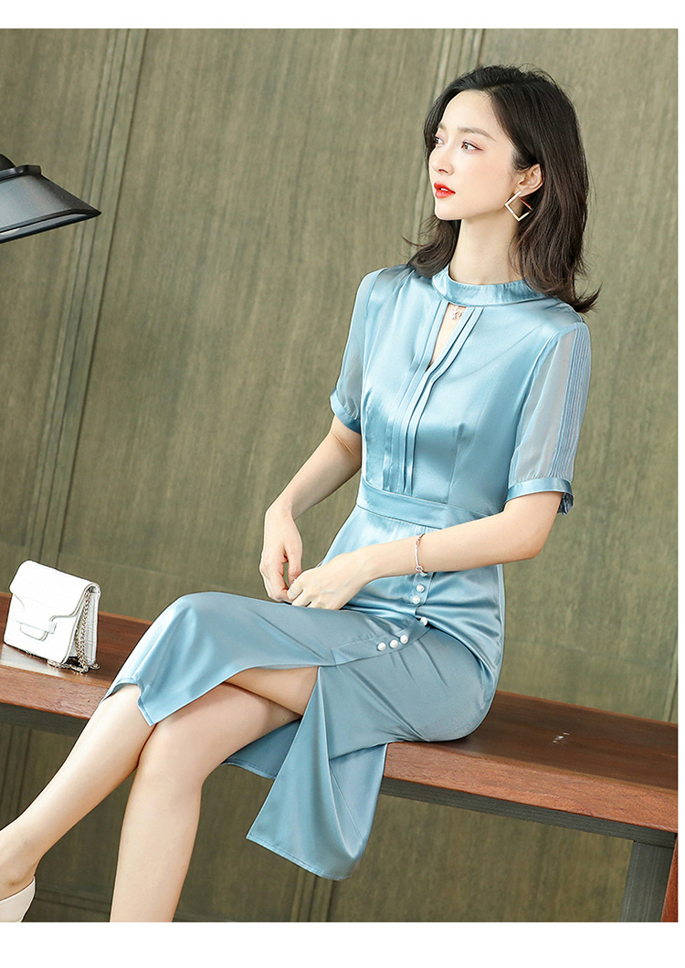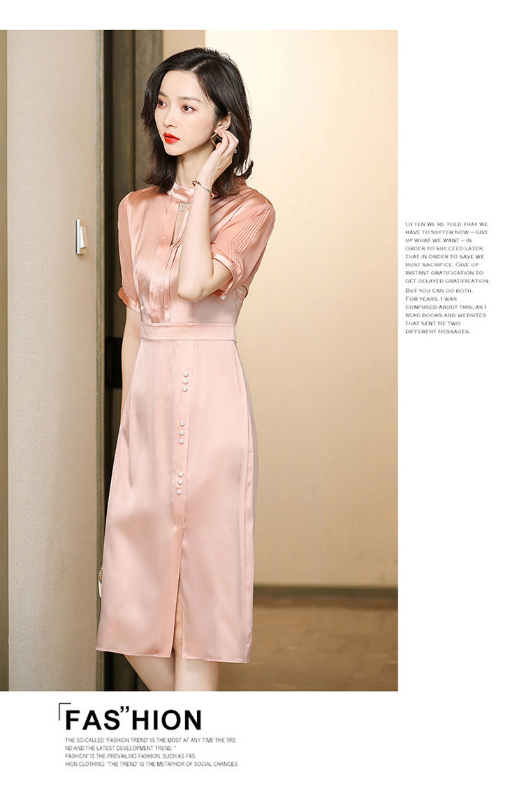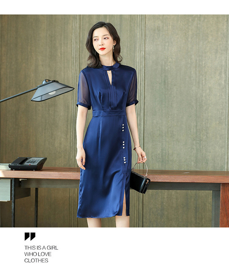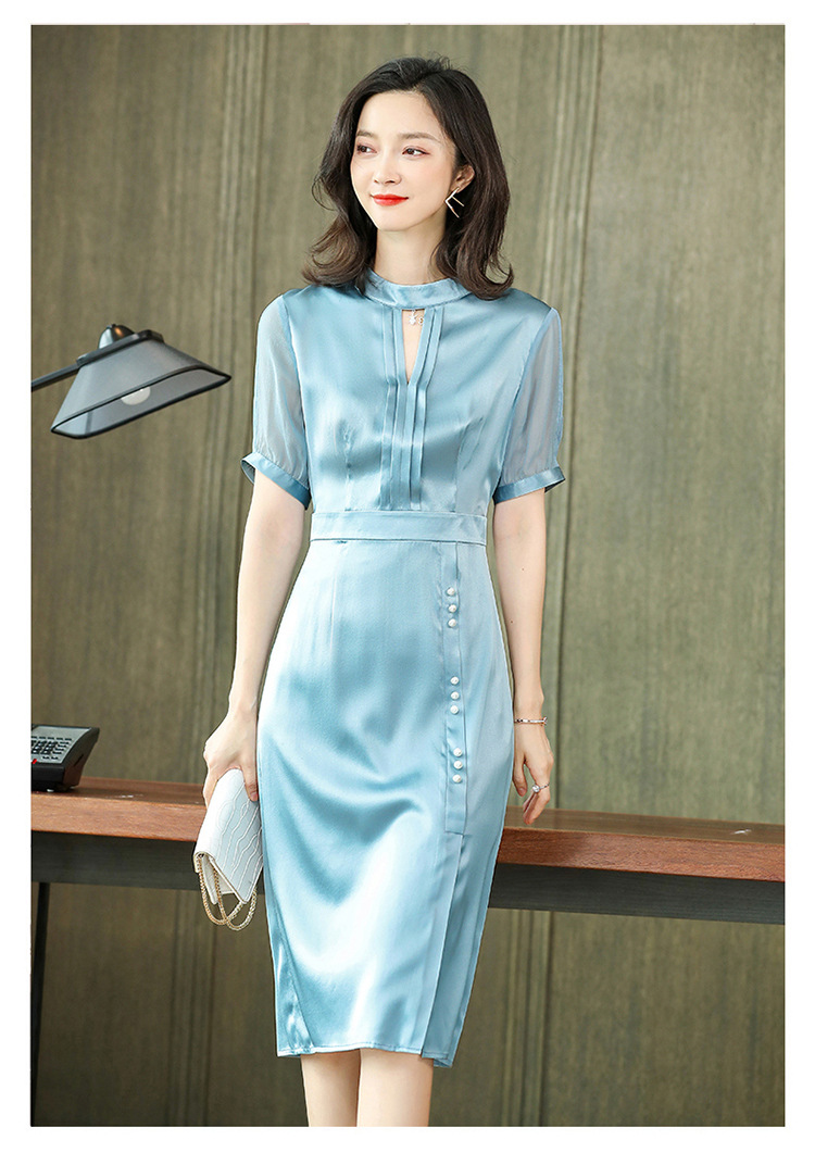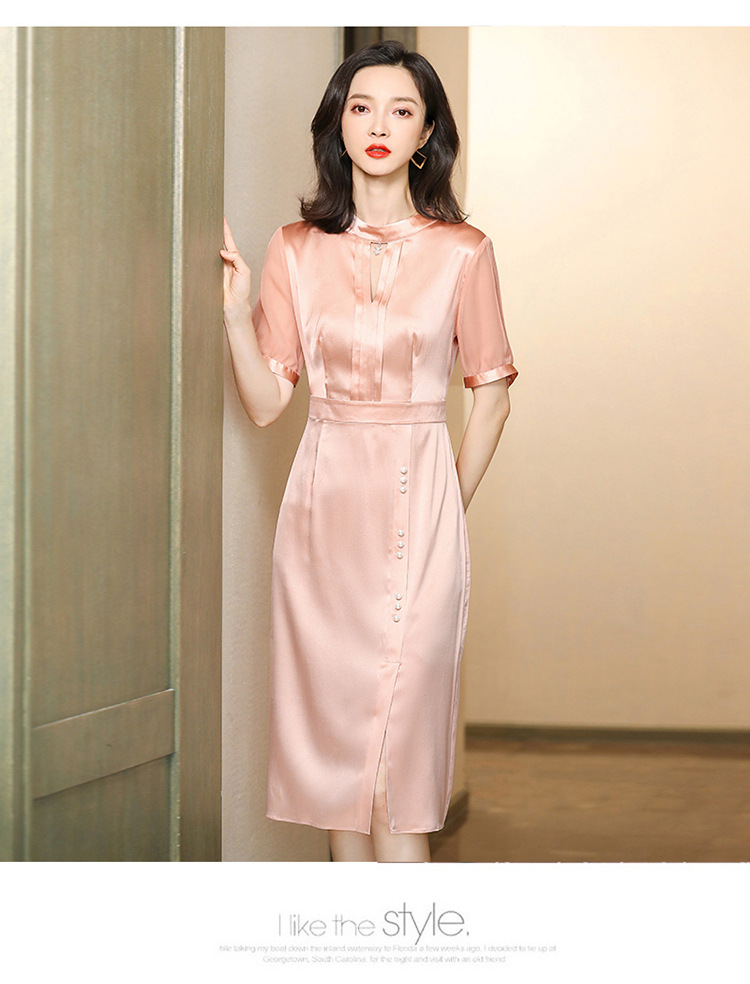 HRFS-WA66369新款镂空圆领优雅真丝连衣裙