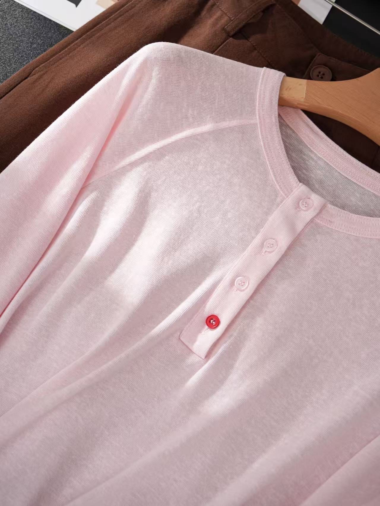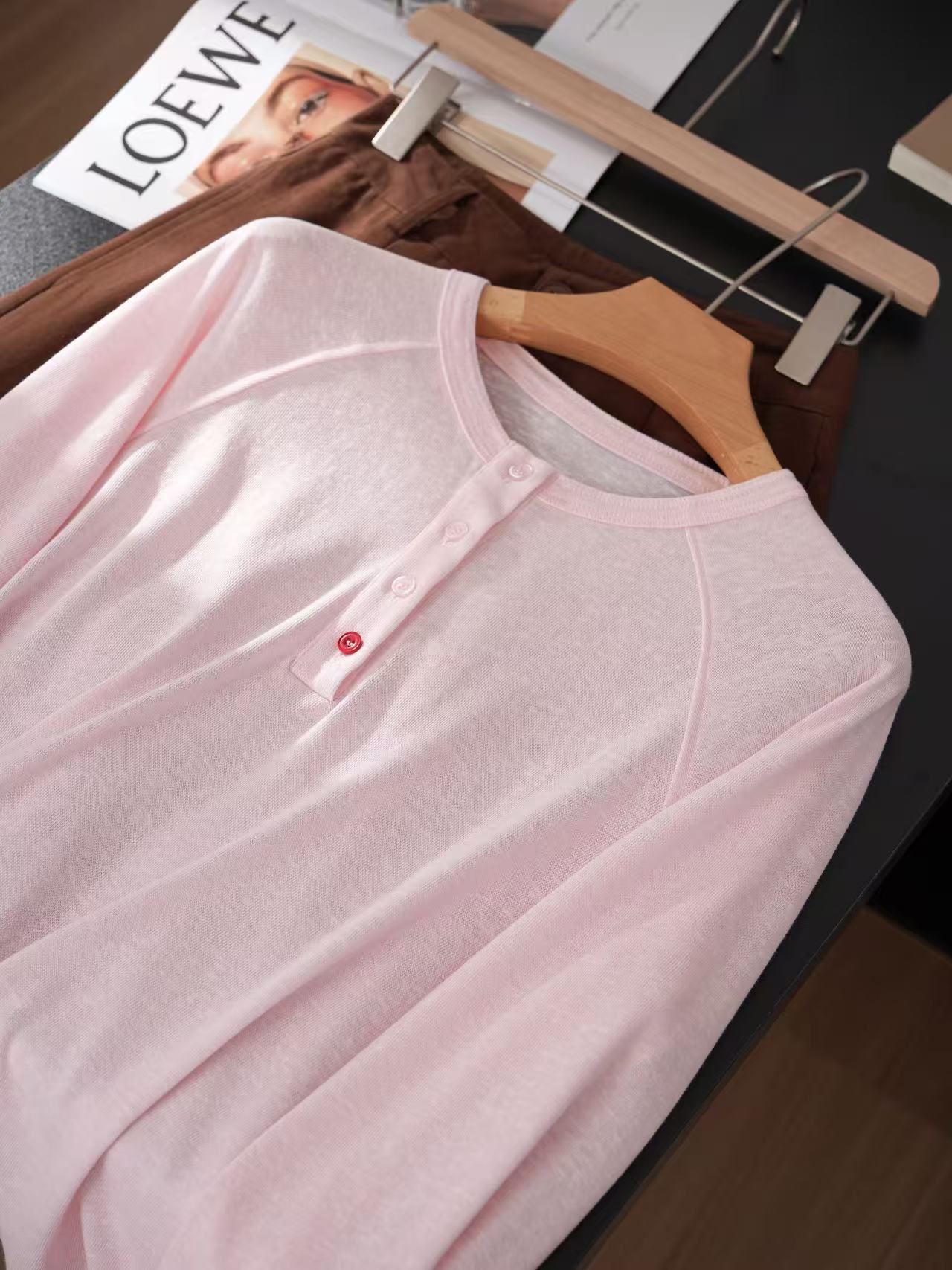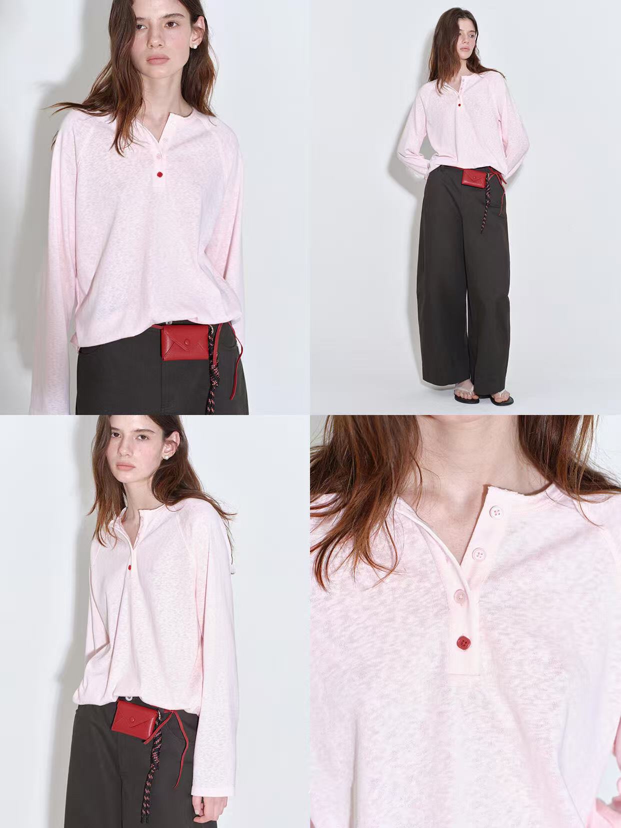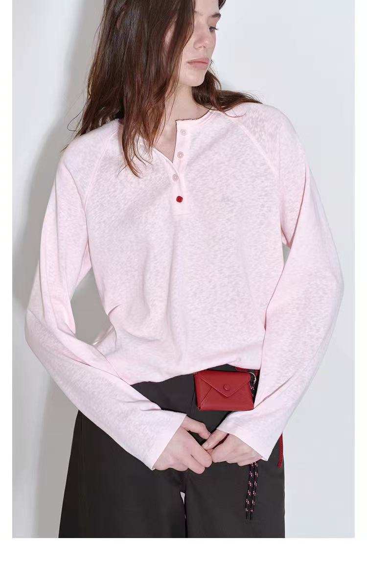 (小眠专属)【预售5天发货】绯纱粉插肩袖亨利衫 | 3D立体剪裁+高克重雪花棉,立挺有型不软塌,有颜值有质感