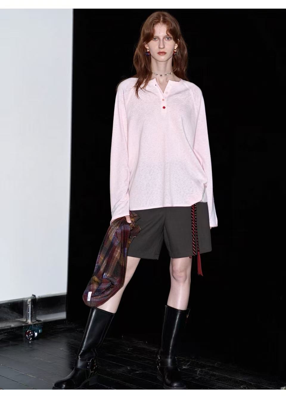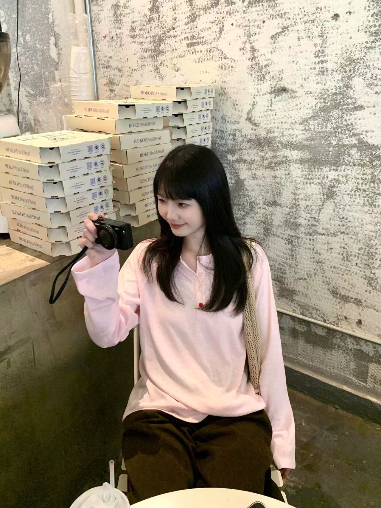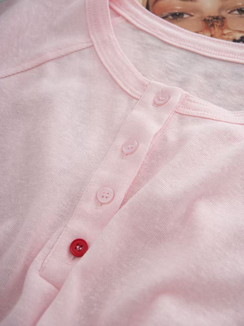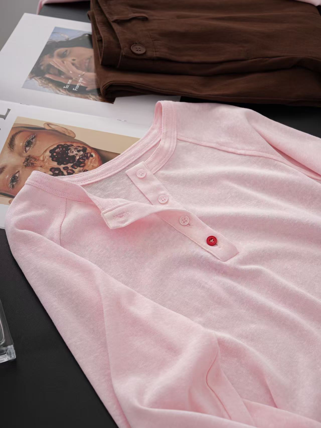 (小眠专属)【预售5天发货】绯纱粉插肩袖亨利衫 | 3D立体剪裁+高克重雪花棉,立挺有型不软塌,有颜值有质感