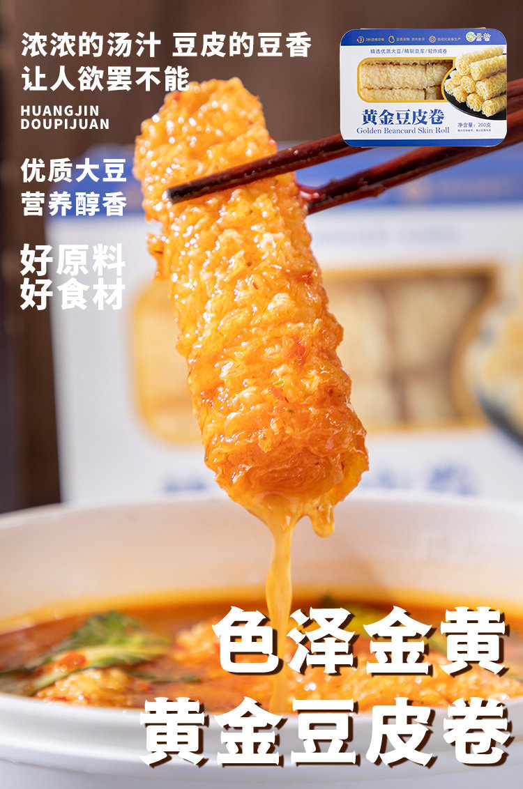 火锅最佳CP之一【黄金豆皮卷(响铃卷)】精选原料 匠心制作 酥脆香醇 入锅3秒即可享用 方便又美味 一卷卷吸饱汤汁 入口脆嫩爽滑 过足瘾的舌尖美味😋