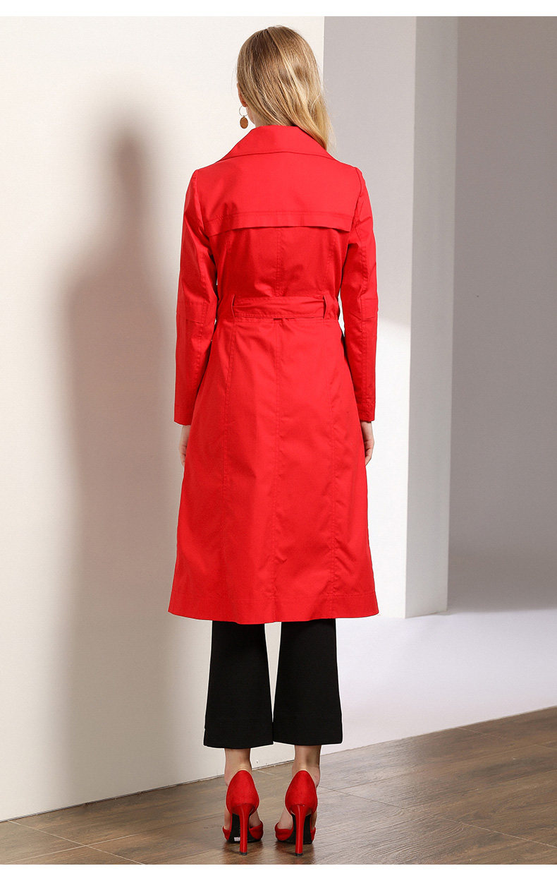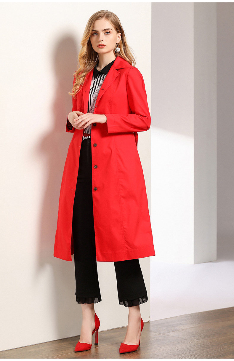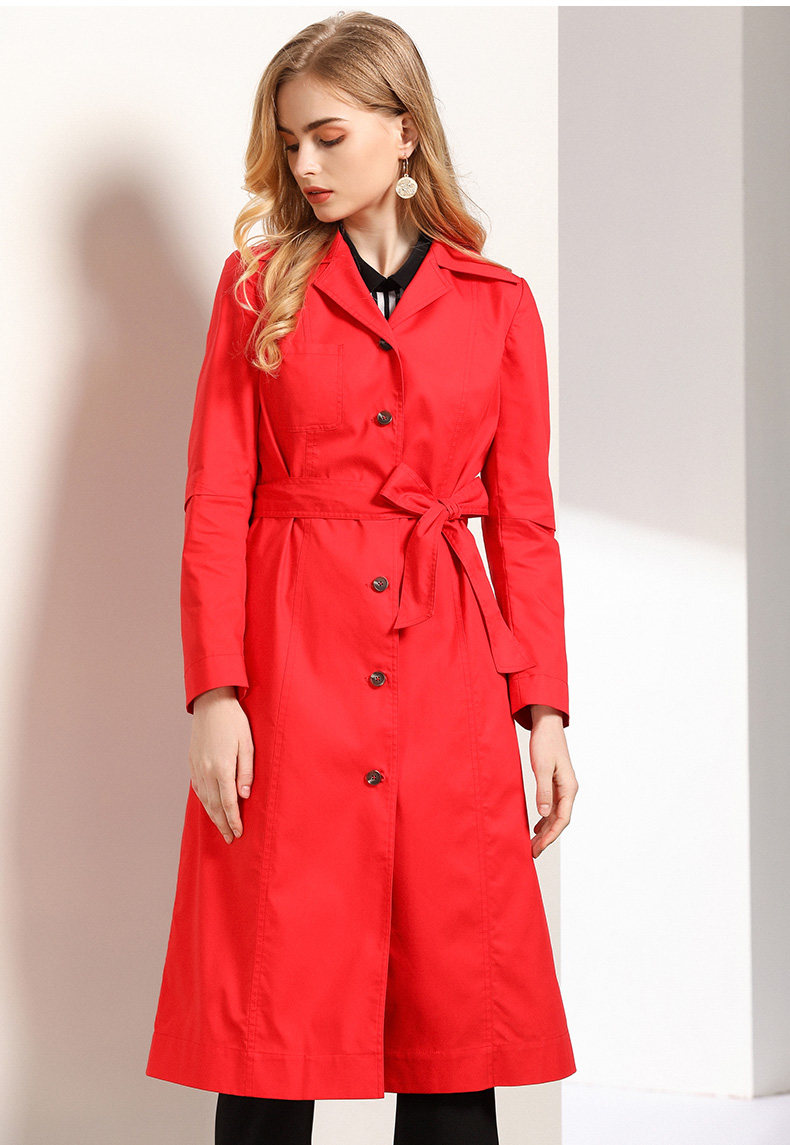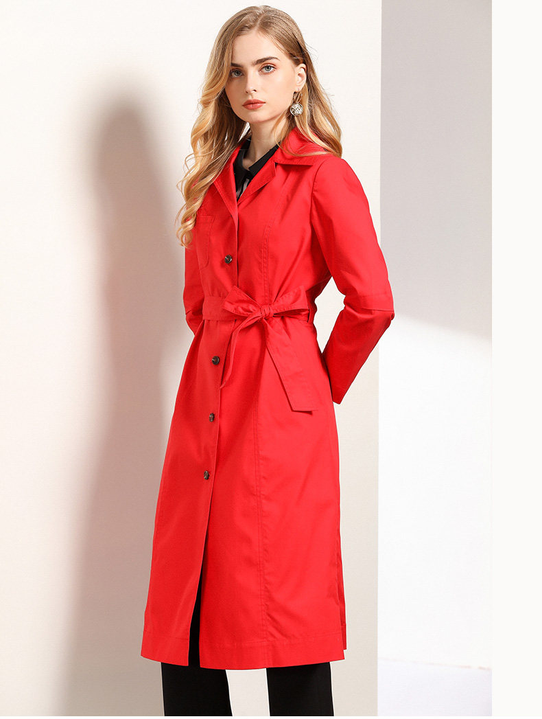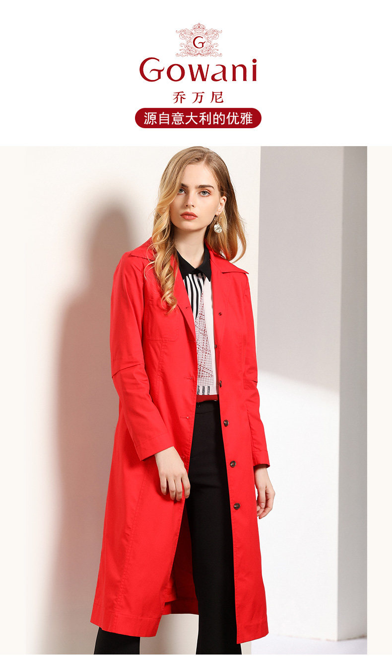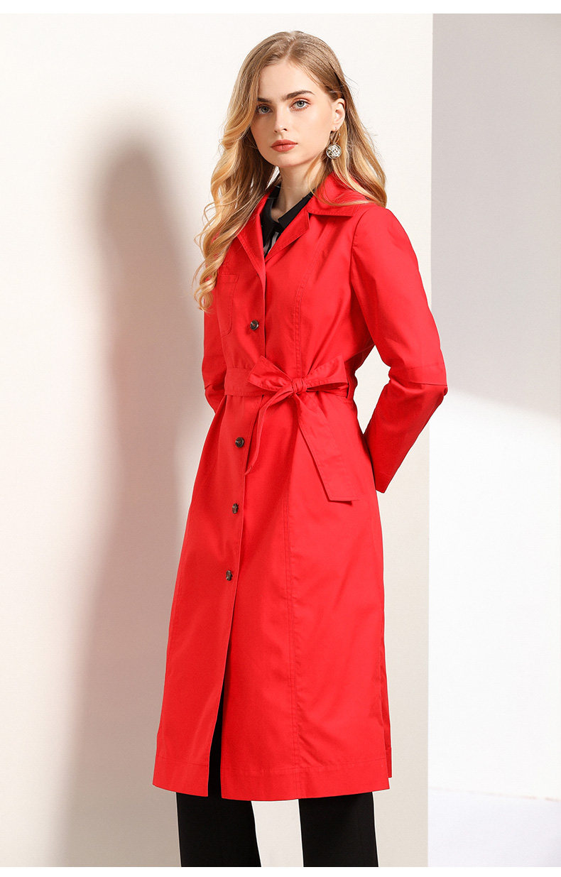 乔万尼秋季流行外套通勤简约红色修身系带风衣女长款过膝EN3A338