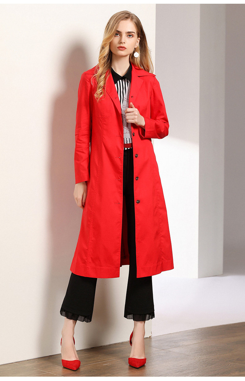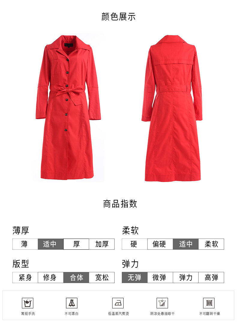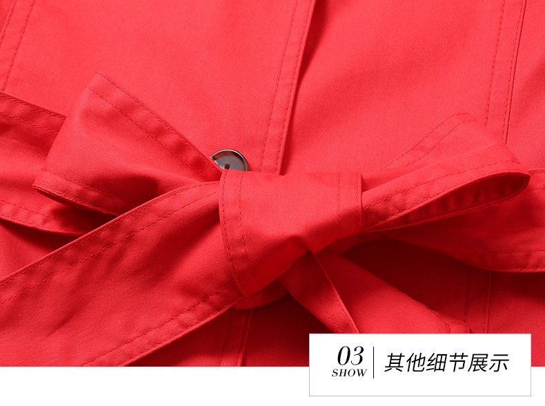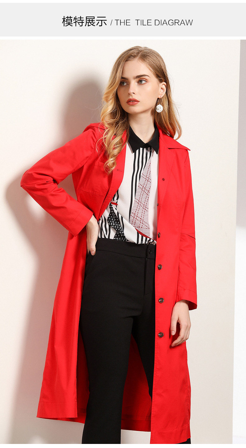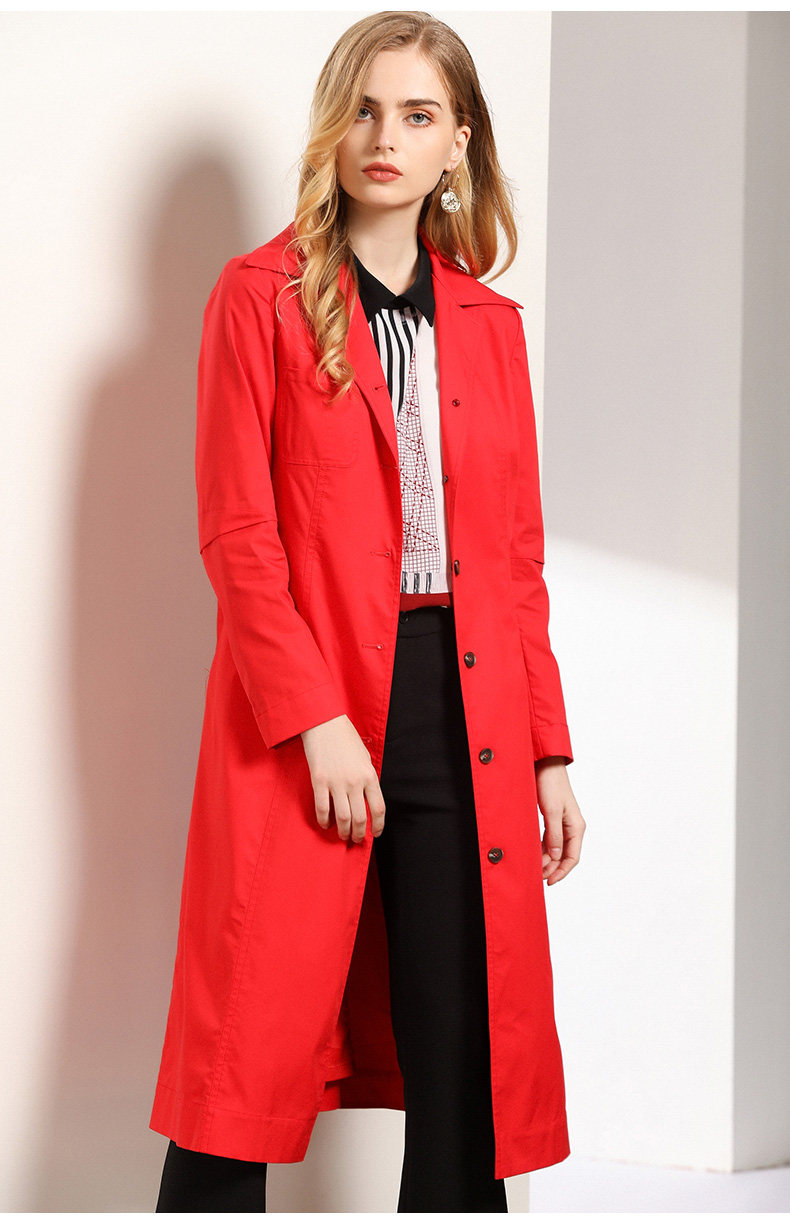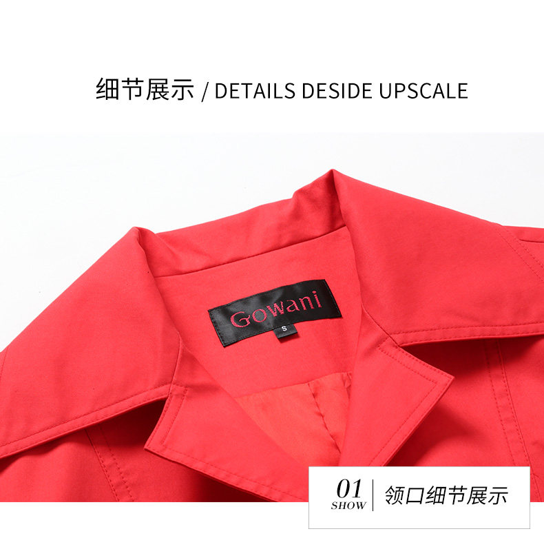 乔万尼秋季流行外套通勤简约红色修身系带风衣女长款过膝EN3A338