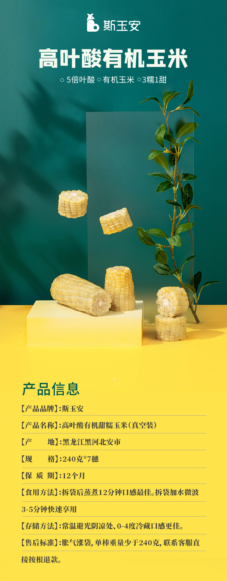天然有机I高叶酸甜糯玉米7支装(240g/支)I真空包装