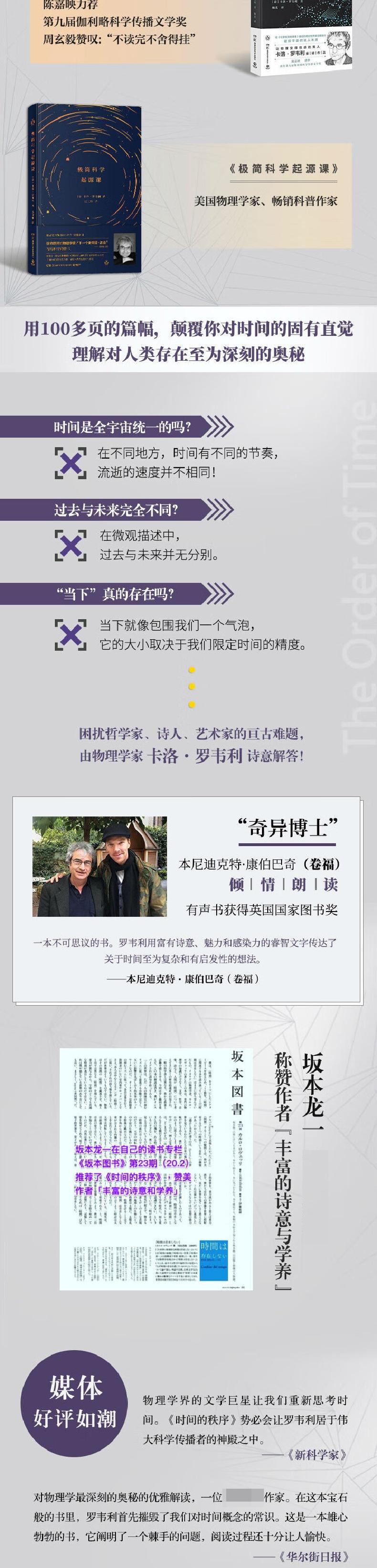 为什么我们记得过去,而非未来?时间“流逝”意味着什么?是我们存在于时间之内,还是时间存在于我们之中?卡洛·罗韦利用诗意的文字,邀请我们思考这一亘古难题——时间的本质。