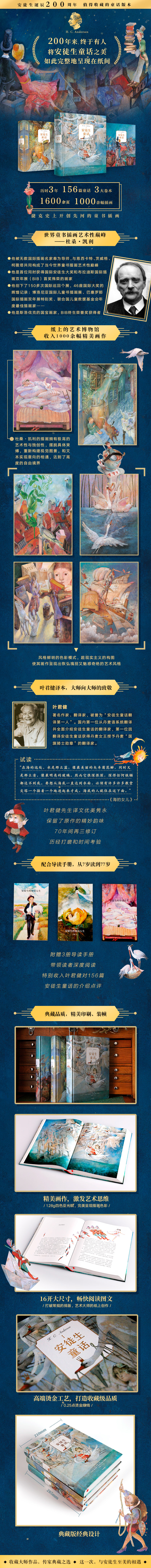 译文选用叶君健经典译文,无删节,由叶君健在世70年间再三修订,大程度保持安徒生的诗情、幽默和生动活泼的形象。整套书印刷精美,典藏级装帧,附赠156篇叶君健亲撰导读。