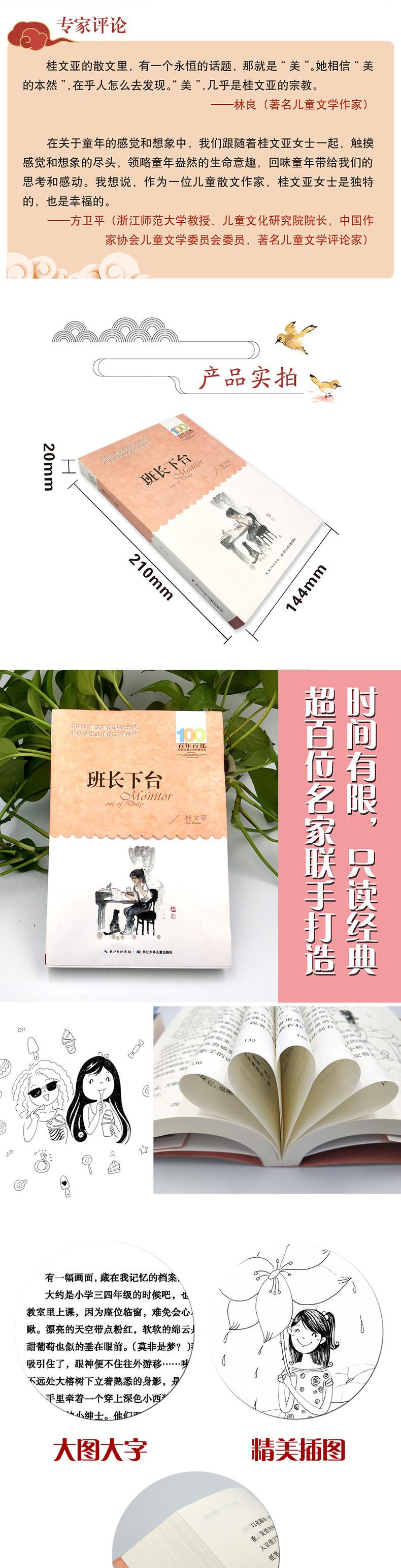 《班长下台/百年百部中国儿童文学经典书系》是桂文亚的儿童散文集,收录了《班长下台》《美在颜色》等60篇优秀作品。