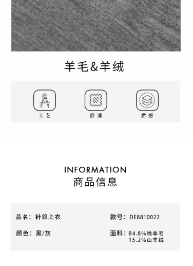 AM路卡西 百搭针织衫84.8%绵羊毛15.2%山羊绒 DE8810022